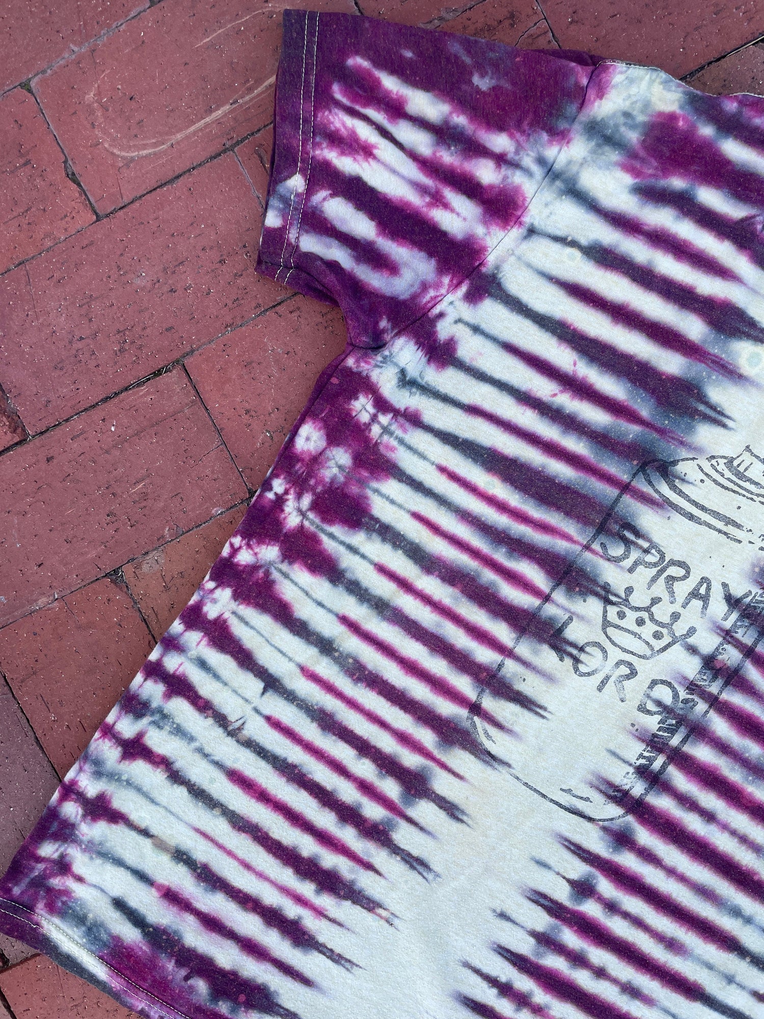 MEDIUM Men’s Rock Climbing Spray Lord Handmade Tie Dye Short Sleeve T-Shirt | One-Of-a-Kind Upcycled Yellow, Pink, and Black Graphic Tee
