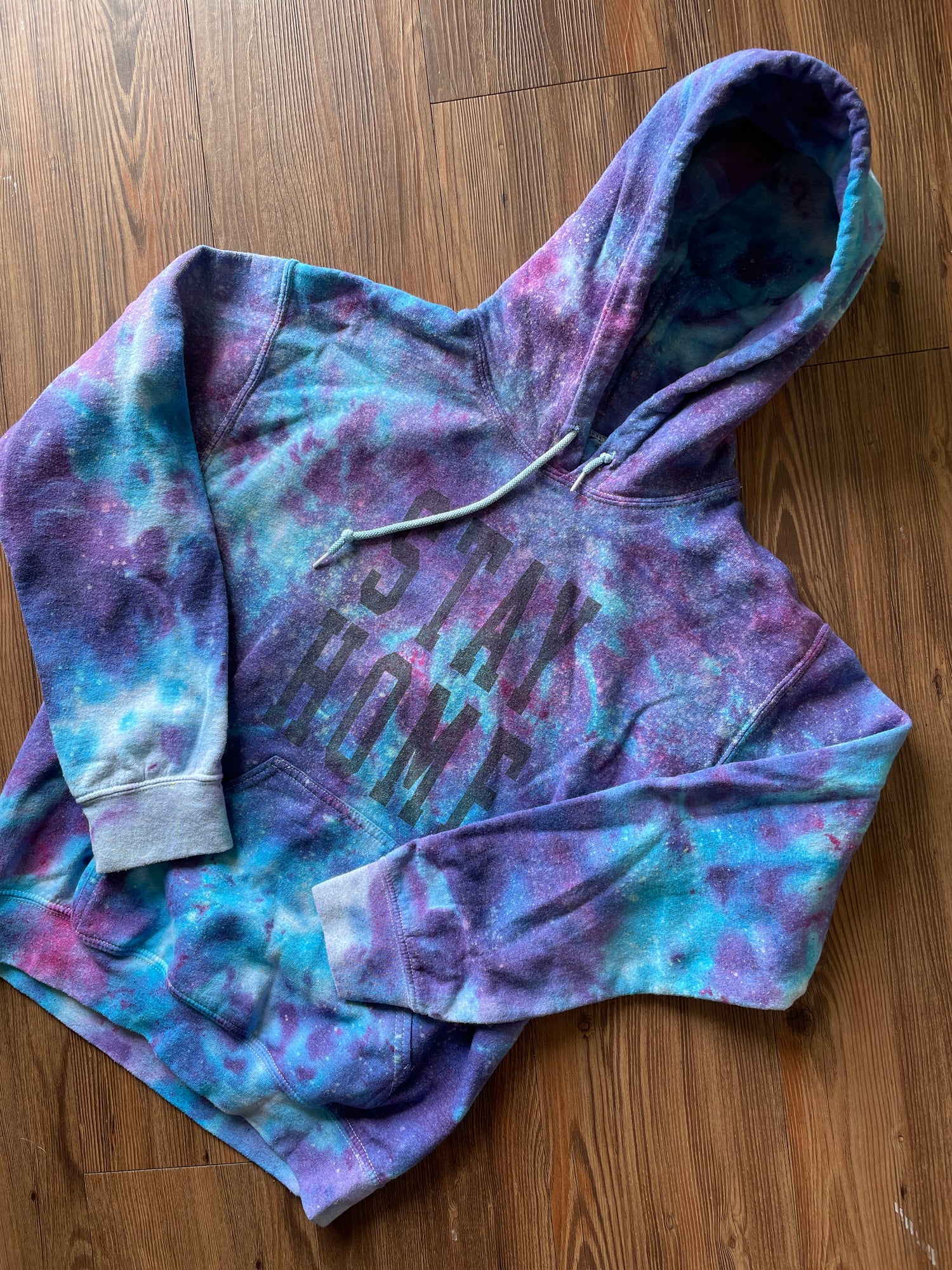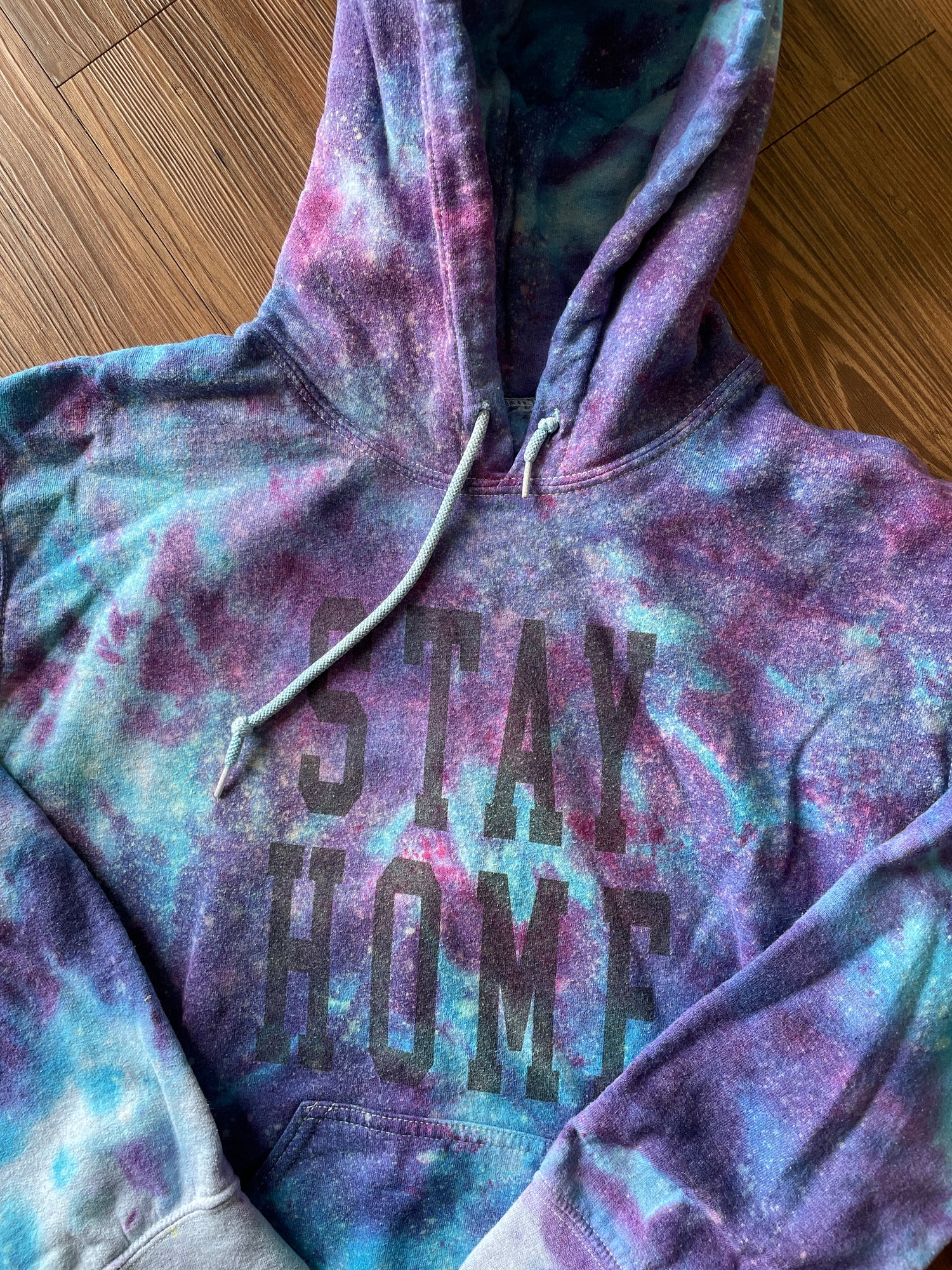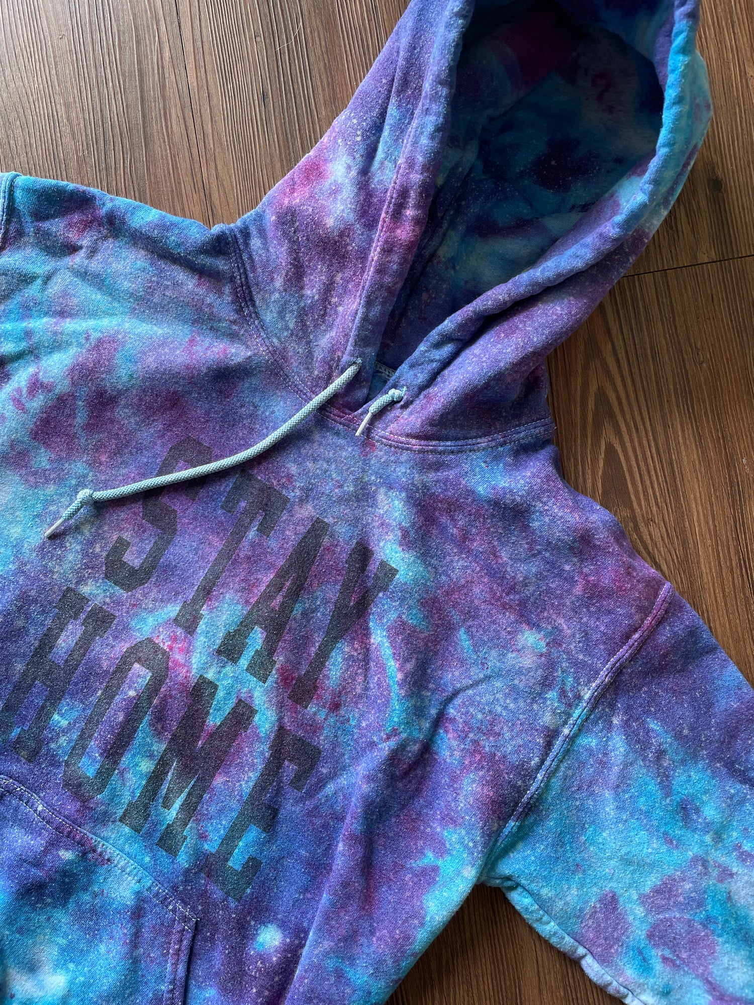 SMALL Men’s Stay Home Galaxy Tie Dye Sweatshirt | Pastel Purple and Blue Ice Dye Hoodie