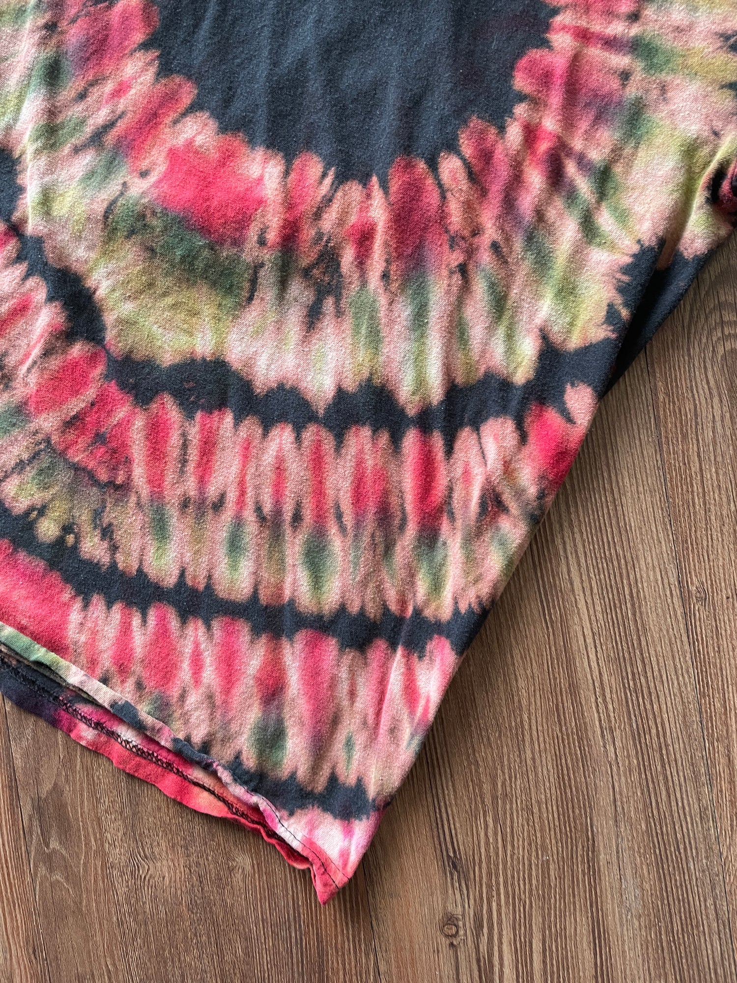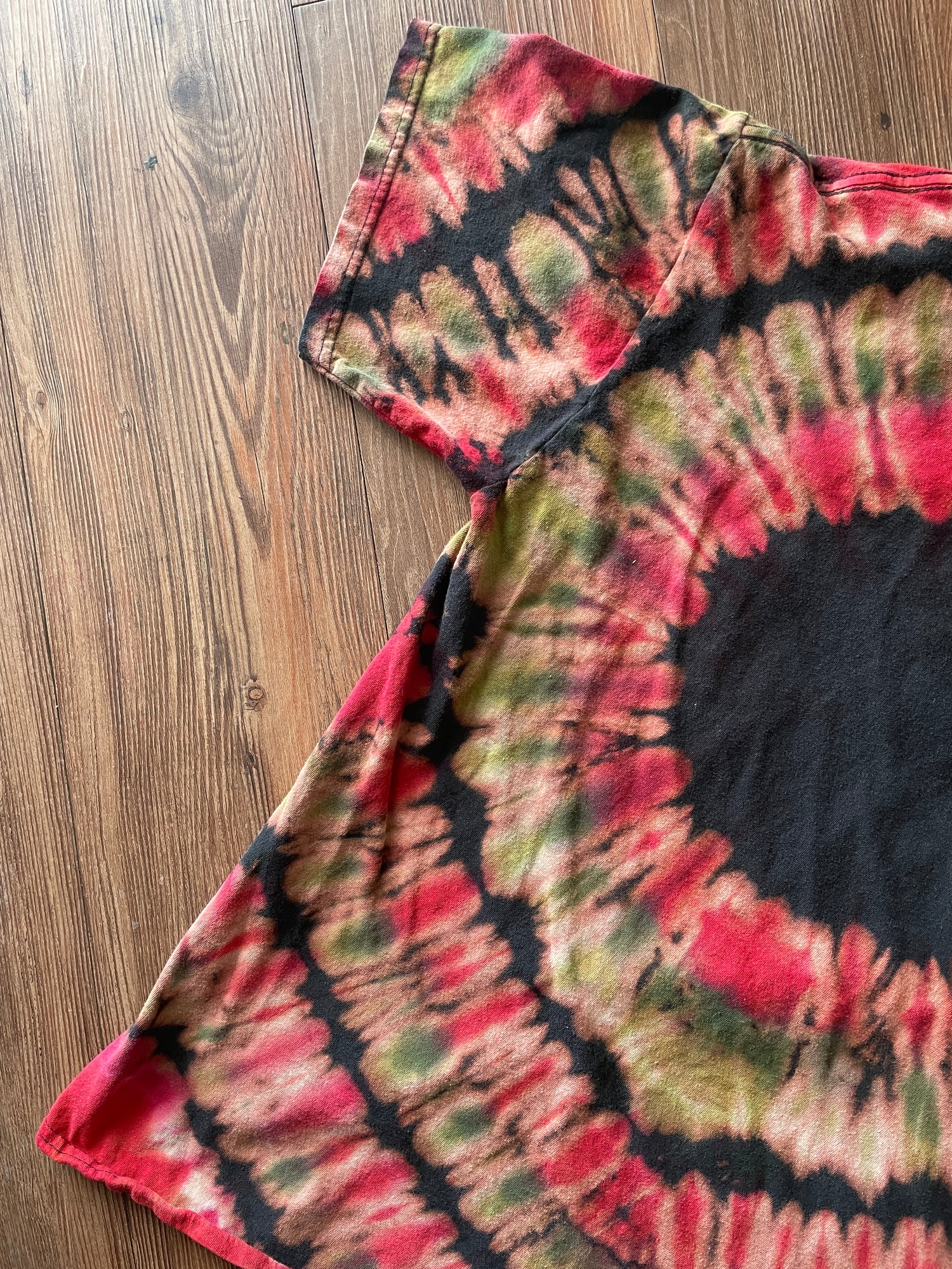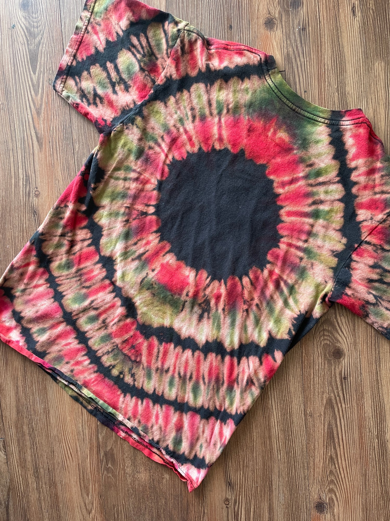 MEDIUM Men’s The Nightmare Before Christmas Reverse Tie Dye T-Shirt | Black, Green, and Red Pleated Tie Dye Short Sleeve Top