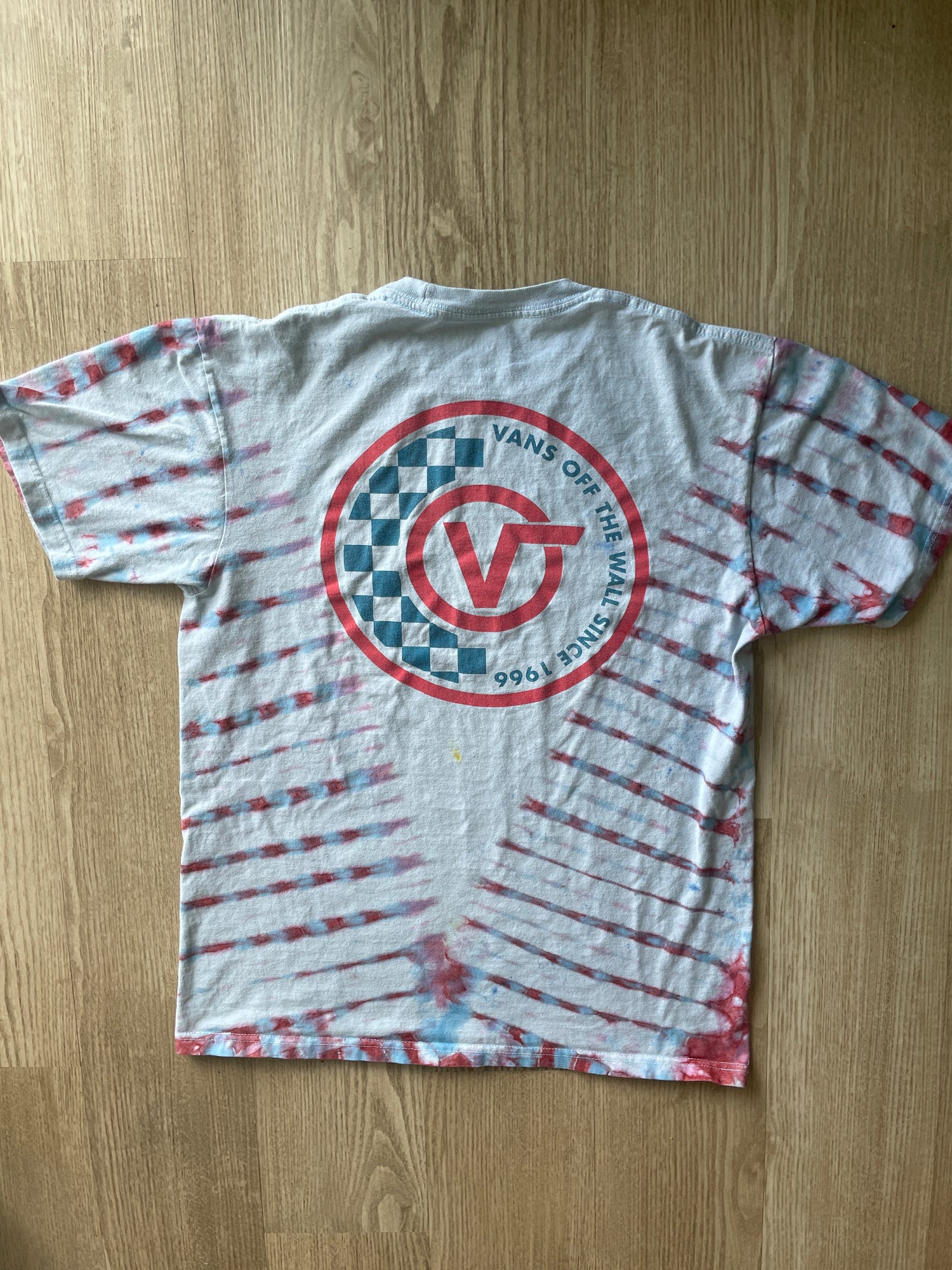 MEDIUM Men’s Van's Off the Wall Doublesided Handmade Tie Dye T-Shirt | One-Of-a-Kind Pastel Pink and Blue Short Sleeve