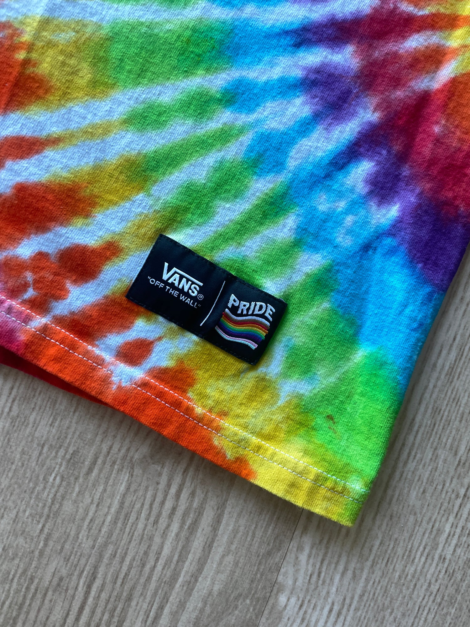 MEDIUM Men’s Vans Pride Authentic Together as Ourselves Handmade Tie Dye Short Sleeve T-Shirt | One-Of-a-Kind Upcycled Rainbow Pleated Top