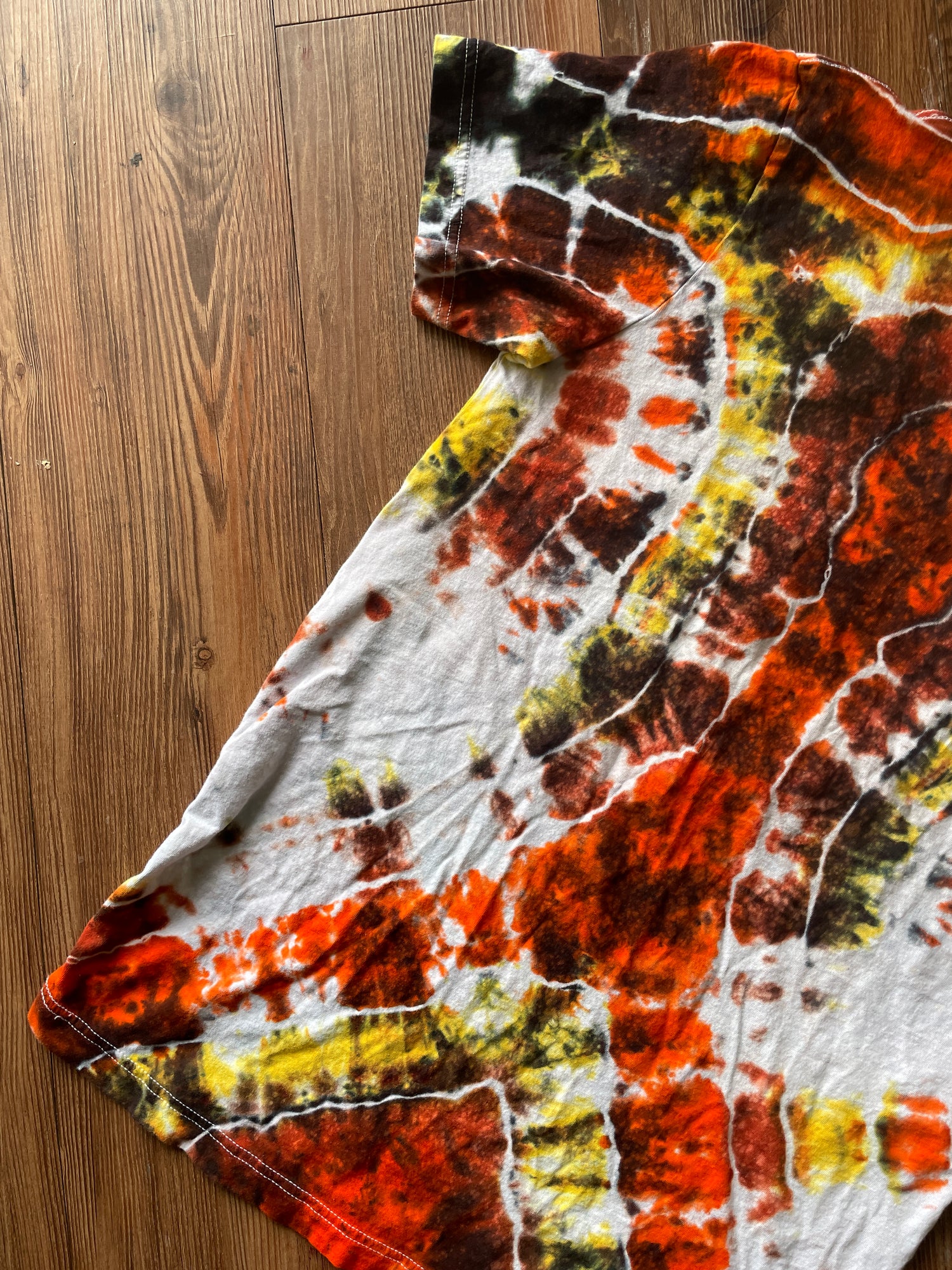 MEDIUM Men’s Wanderlust Campground Montana Handmade Geode Tie Dye T-Shirt | Red, Orange, and Black Short Sleeve Tee