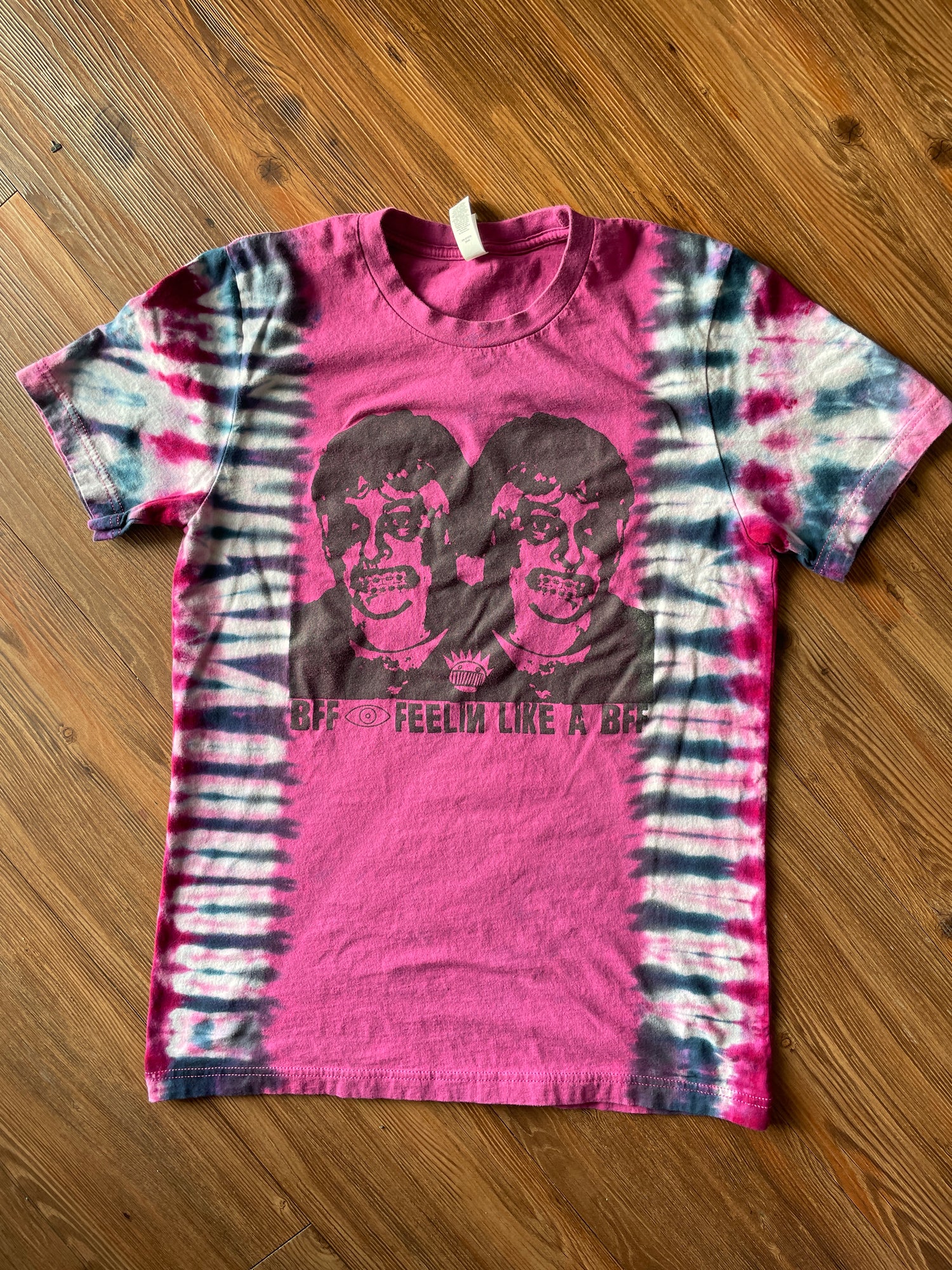 Medium Men’s WEEN Handmade Reverse Tie Dye T-Shirt | Pink and Black Pleated Tie Dye Short Sleeve