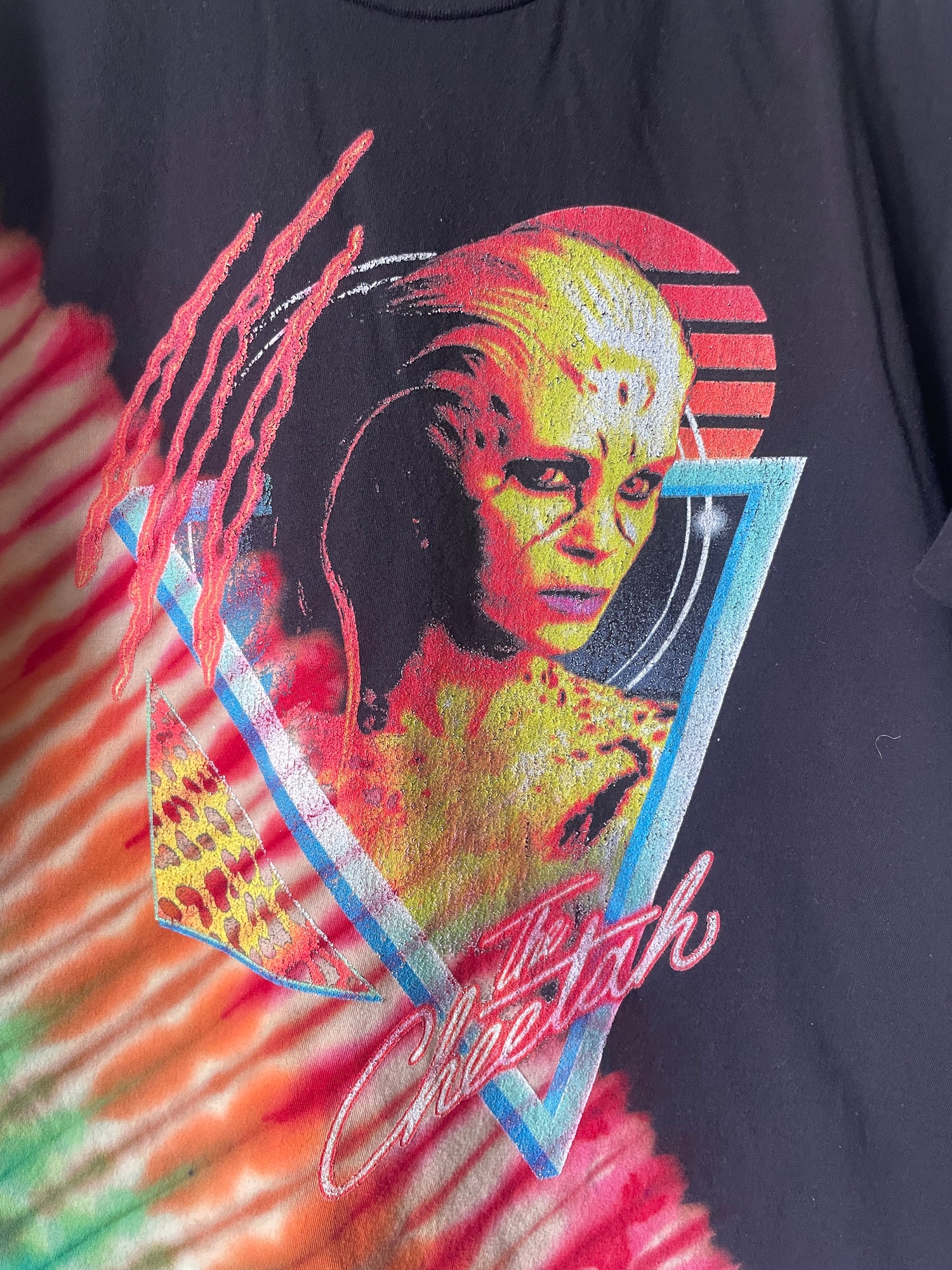 The Cheetah Handmade Tie Dye Short Sleeve T-Shirt | One-Of-a-Kind Upcycled Black and Rainbow Pleated Top | Men's Large