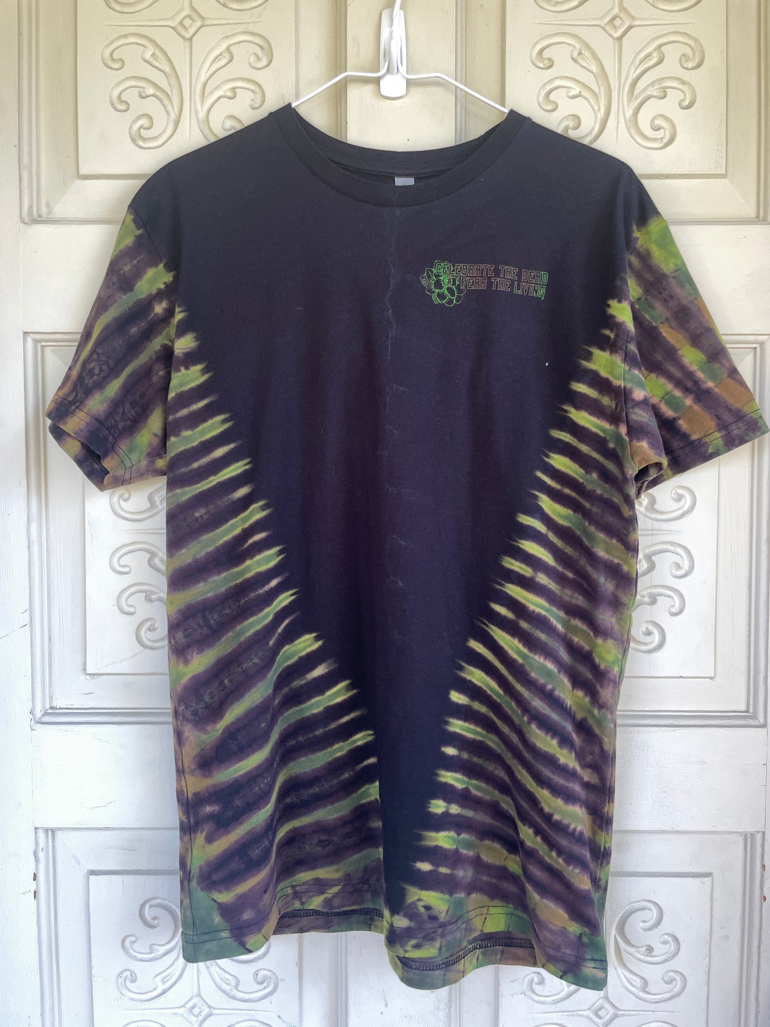 Medium Men's Venus Fly Trap Death Bouquet Handmade Tie Dye T-Shirt | One-Of-a-Kind Upcycled Black and Green Short Sleeve Shirt