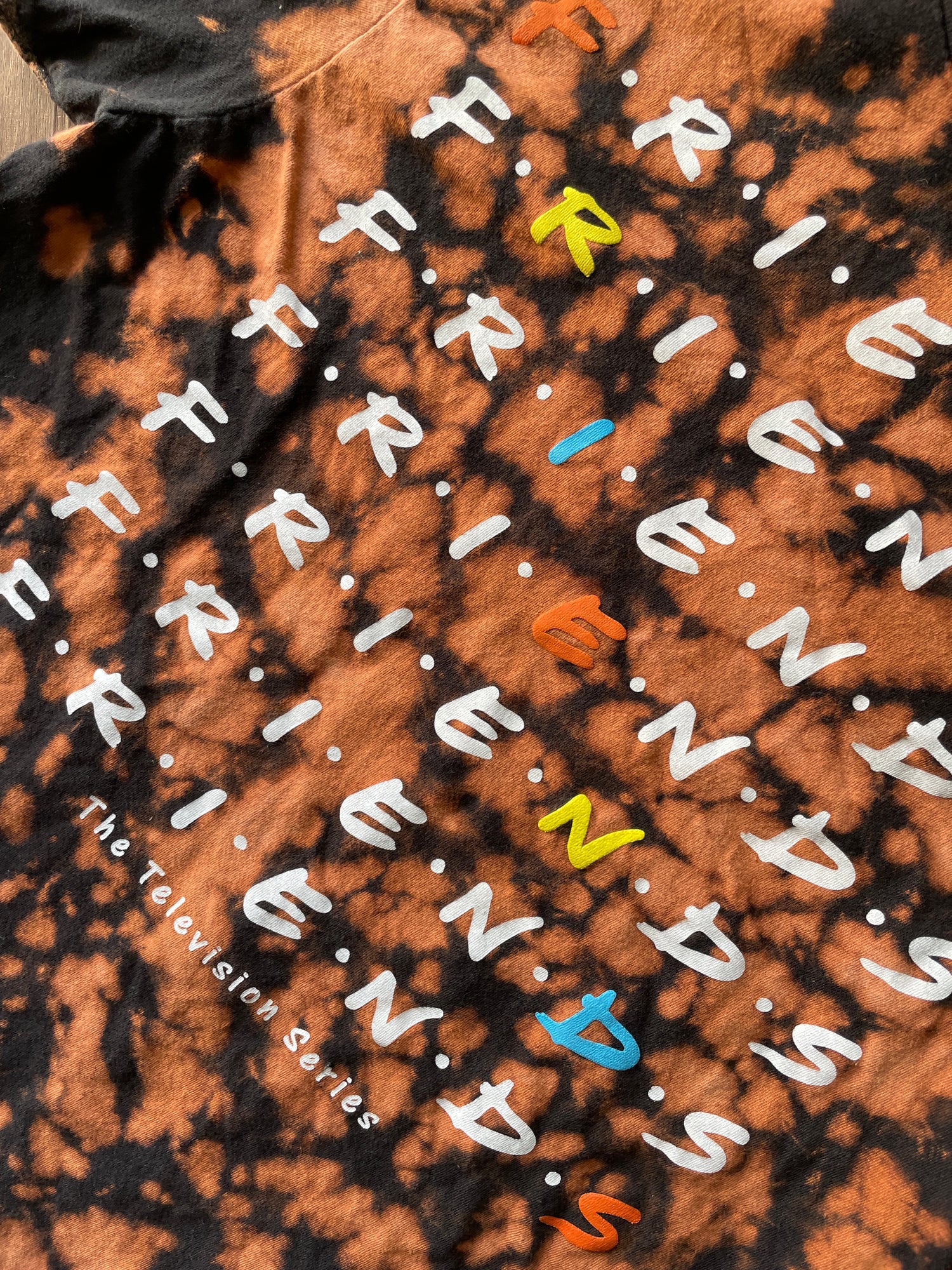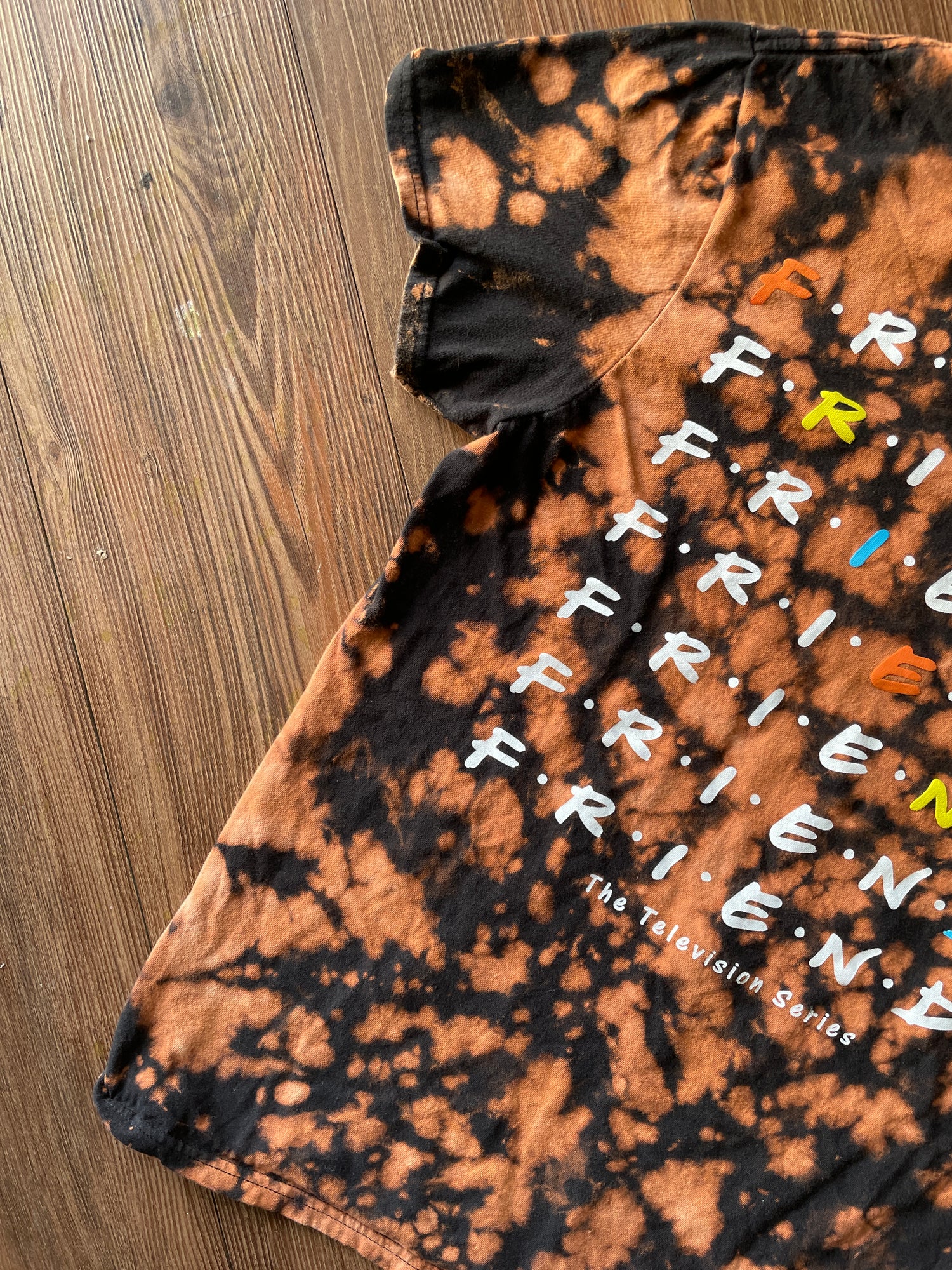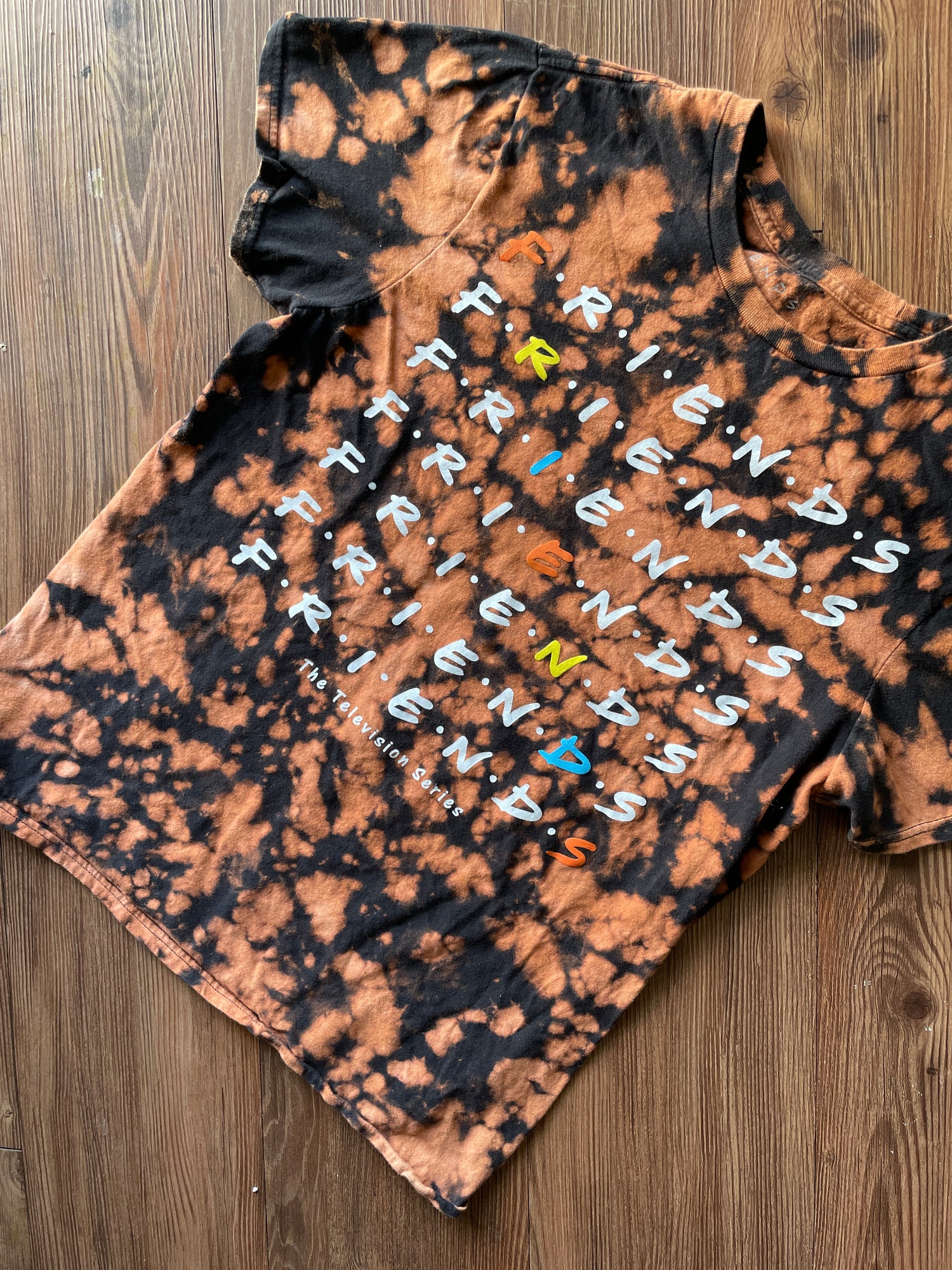 MEDIUM Women's FRIENDS Handmade Acid Dye T-Shirt | One-Of-a-Kind Bleach Dye Short Sleeve