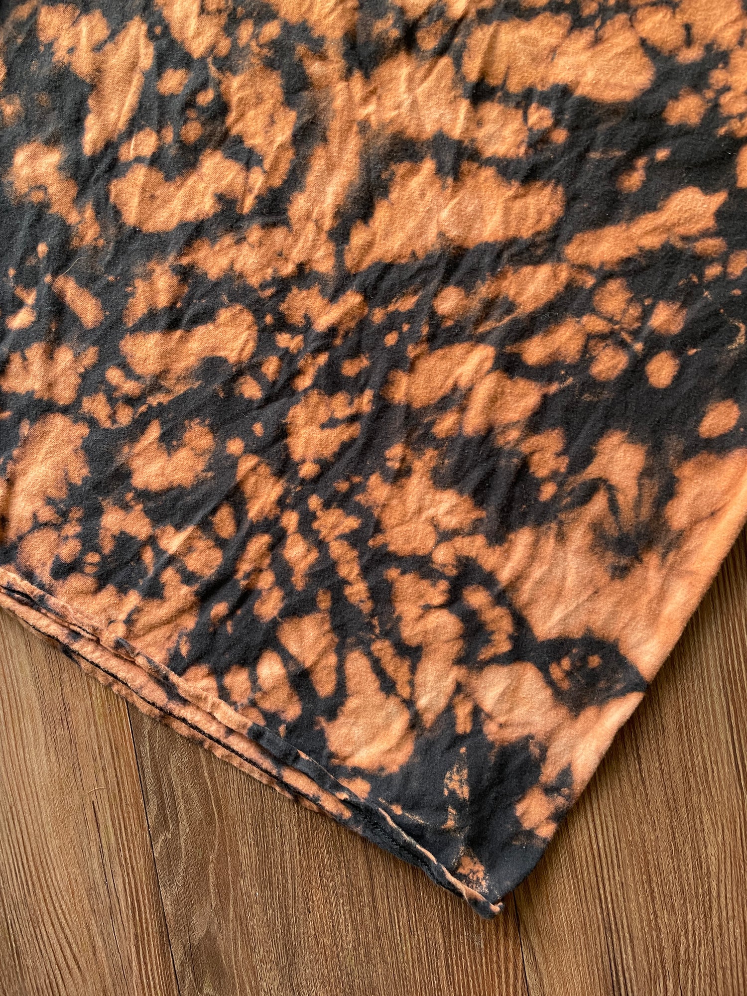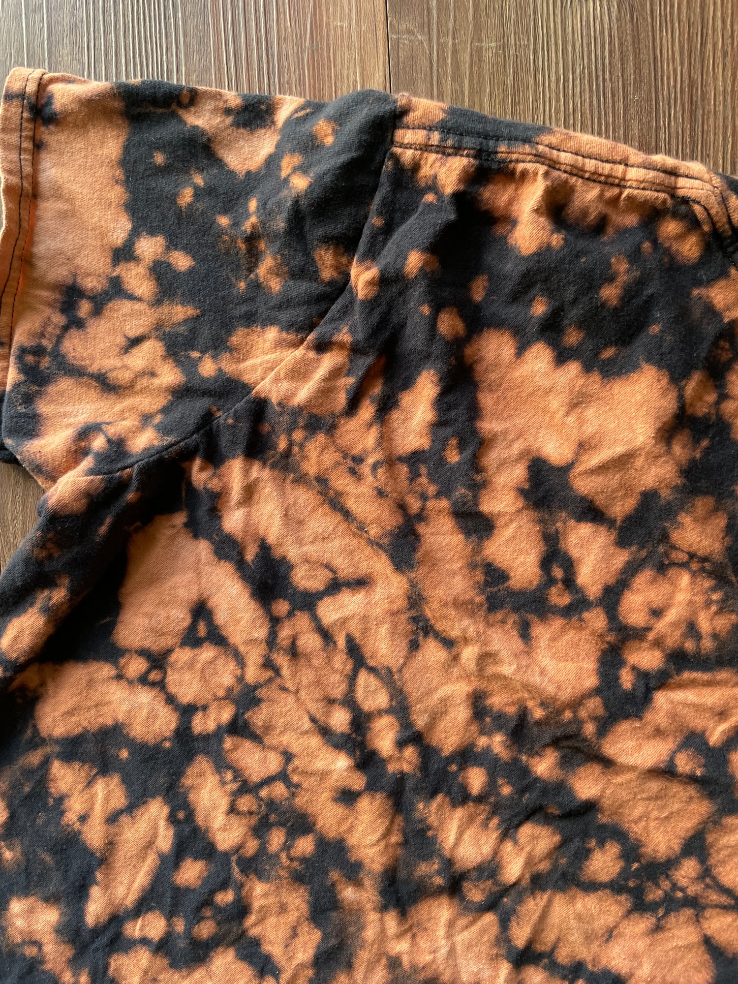 black tshirt bleached with crumpled pattern