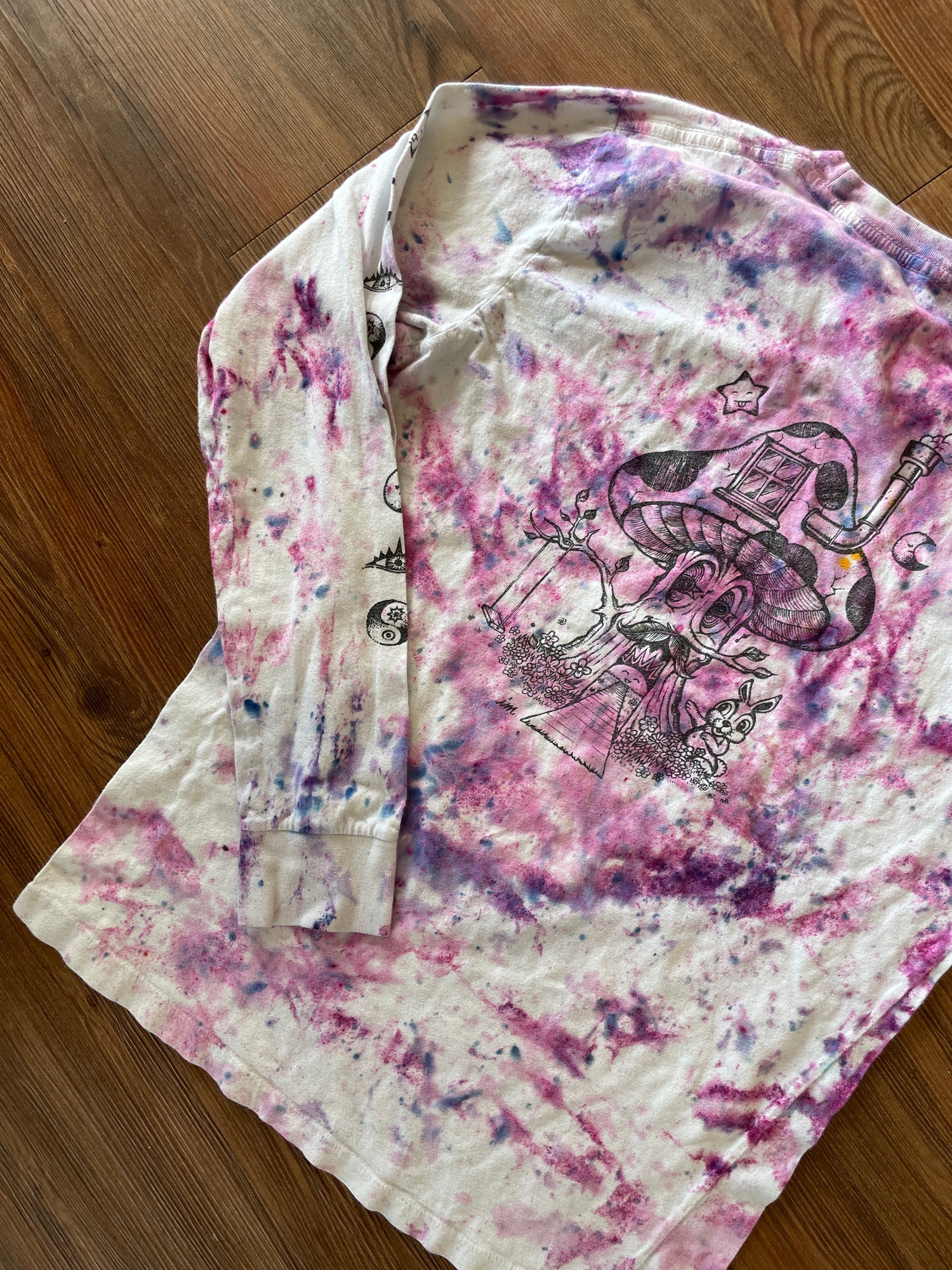 Medium Women's Mushroom Face Handmade Tie Dye Long Sleeve T-Shirt | Pink and Purple Crumpled Tie Dye Long Sleeve