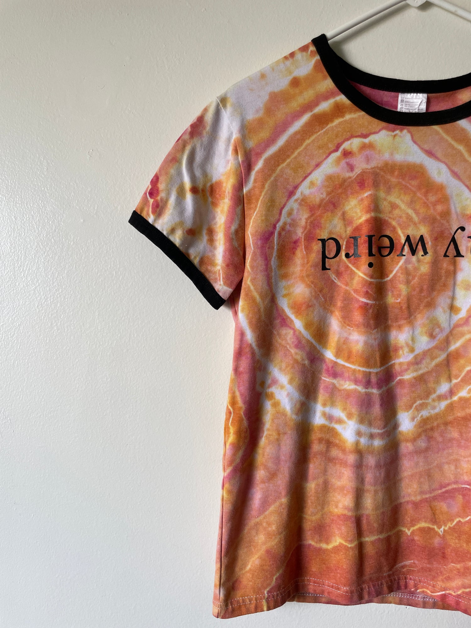 Medium Women's Stay Weird Handmade Geode Tie Dye Short Sleeve T-Shirt | One-Of-a-Kind Upcycled Orange and White Tie Dye Top