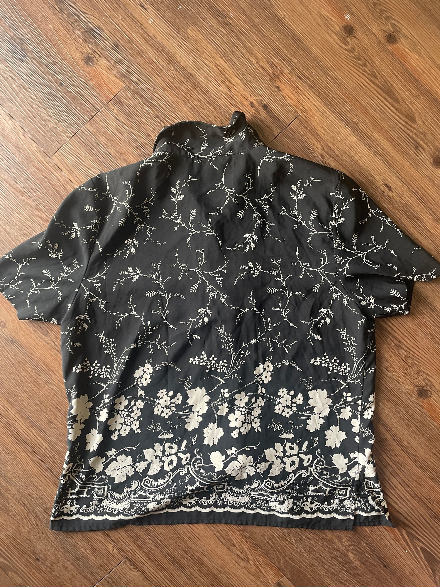 Medium Women's Vintage Joan Leslie Black and White Floral Print Short Sleeve Top