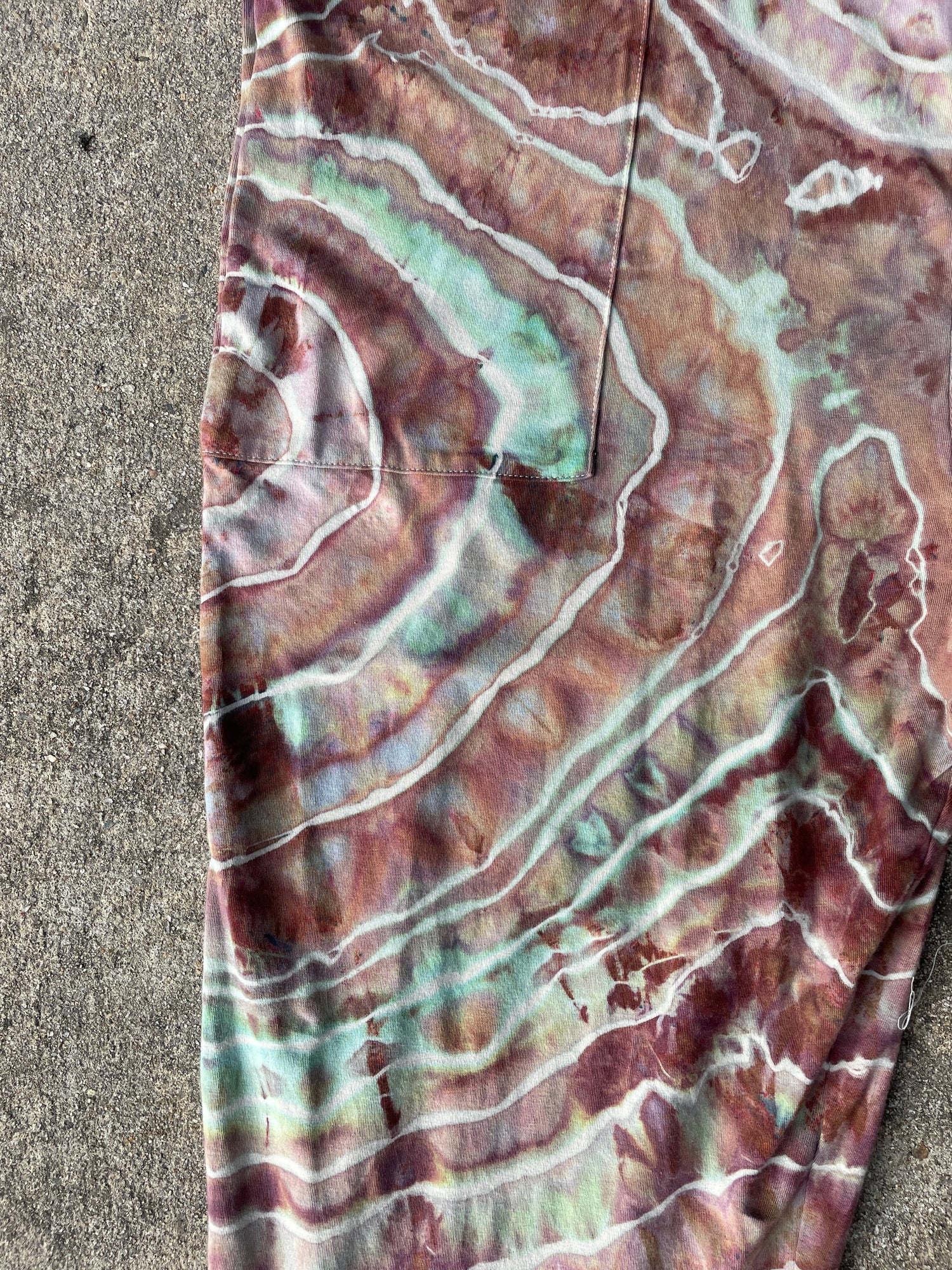 off-white jumpsuit dyed tie dyed with shades of pink and blue (this one reminds me of Sweet Tarts with all the pastel colors)