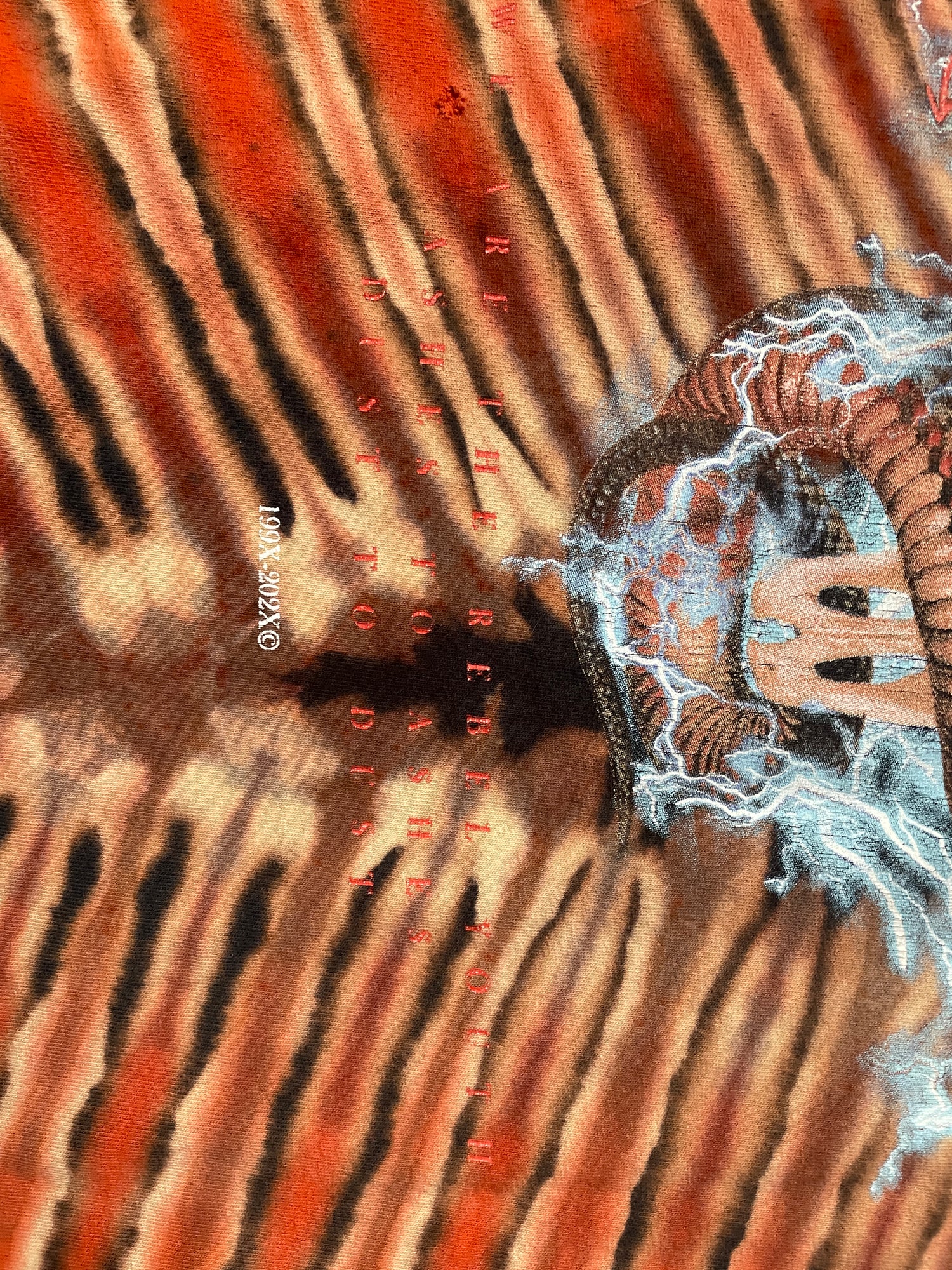 one-of-a-kind hand tie dye t-shirt with large cow skull & rattlesnake graphic on front