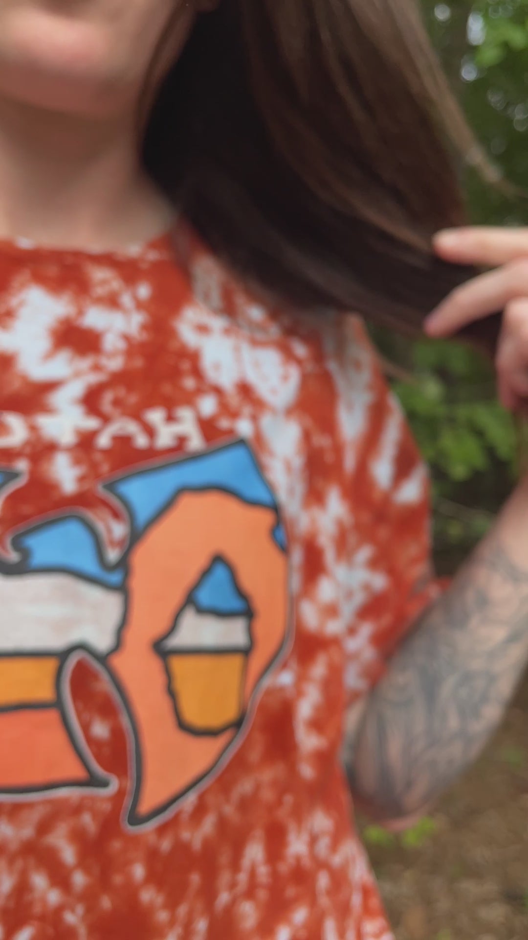 with large hand-printed WUTAH Delicate Arch graphic on front