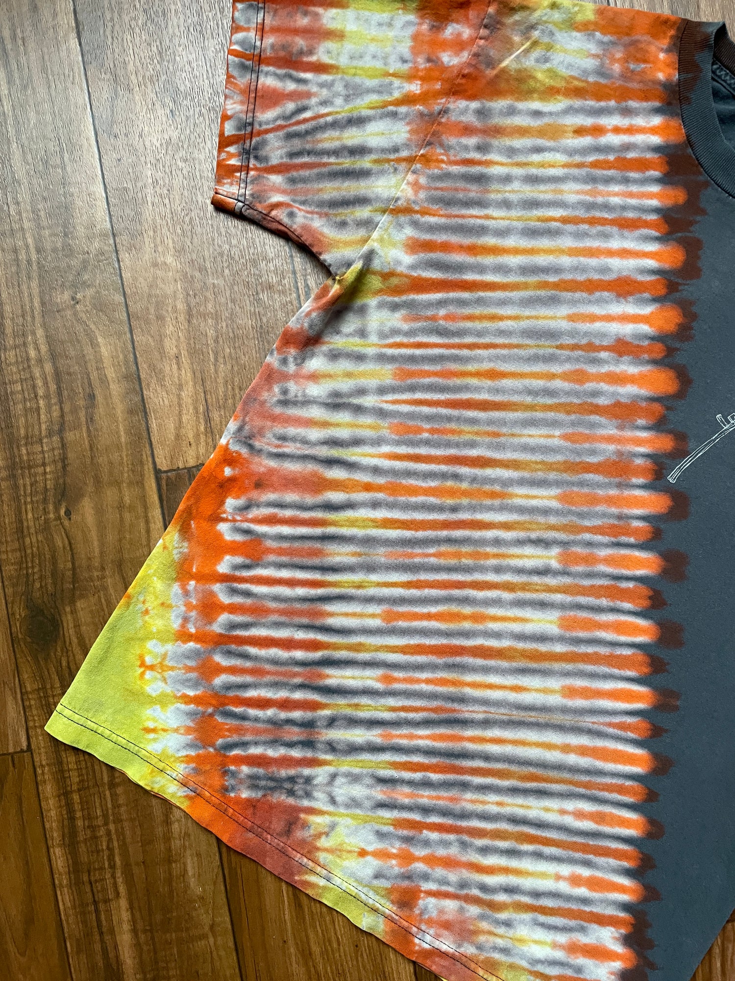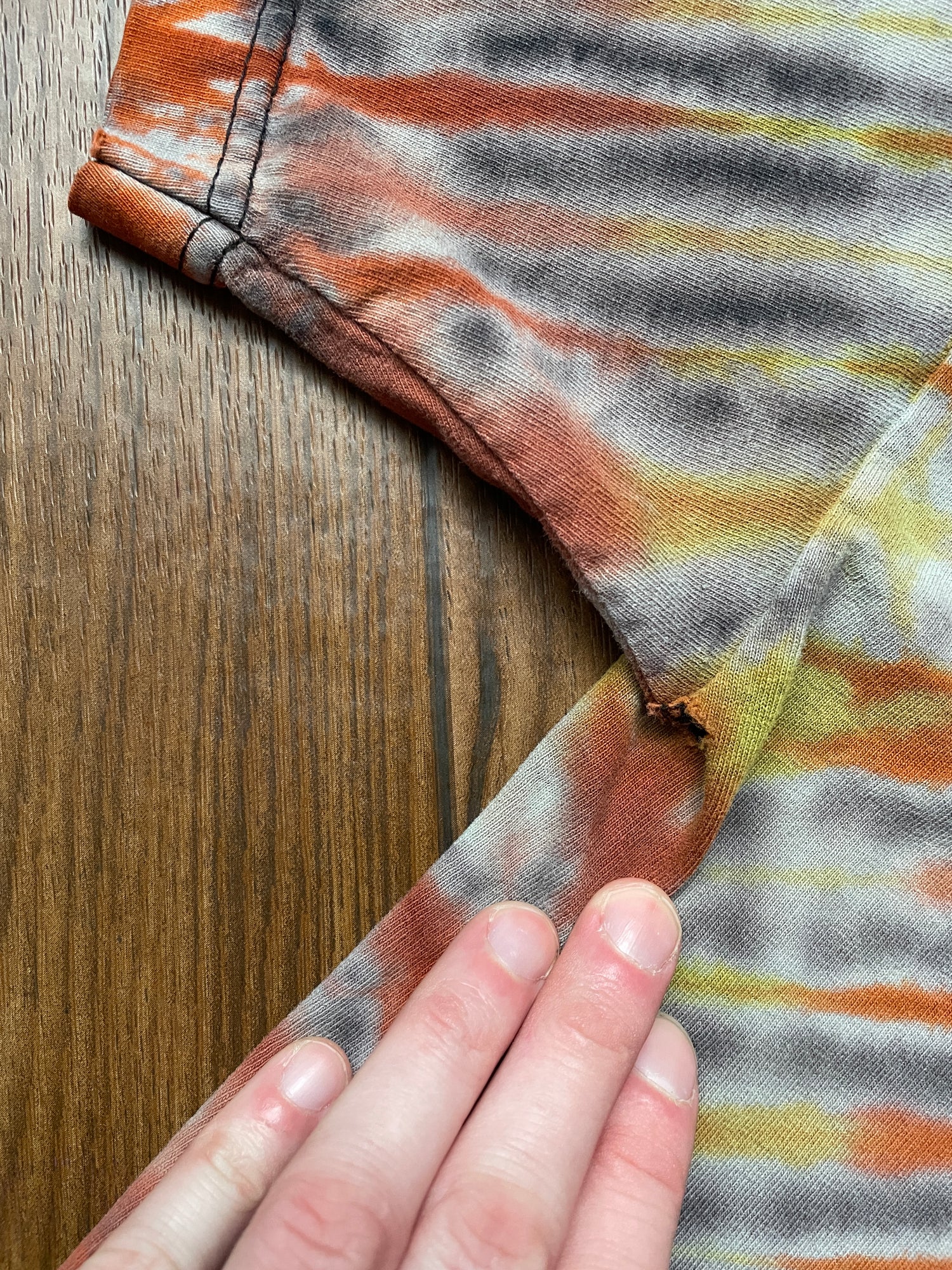 gray t-shirt bleached and dyed with pleated tie dye pattern