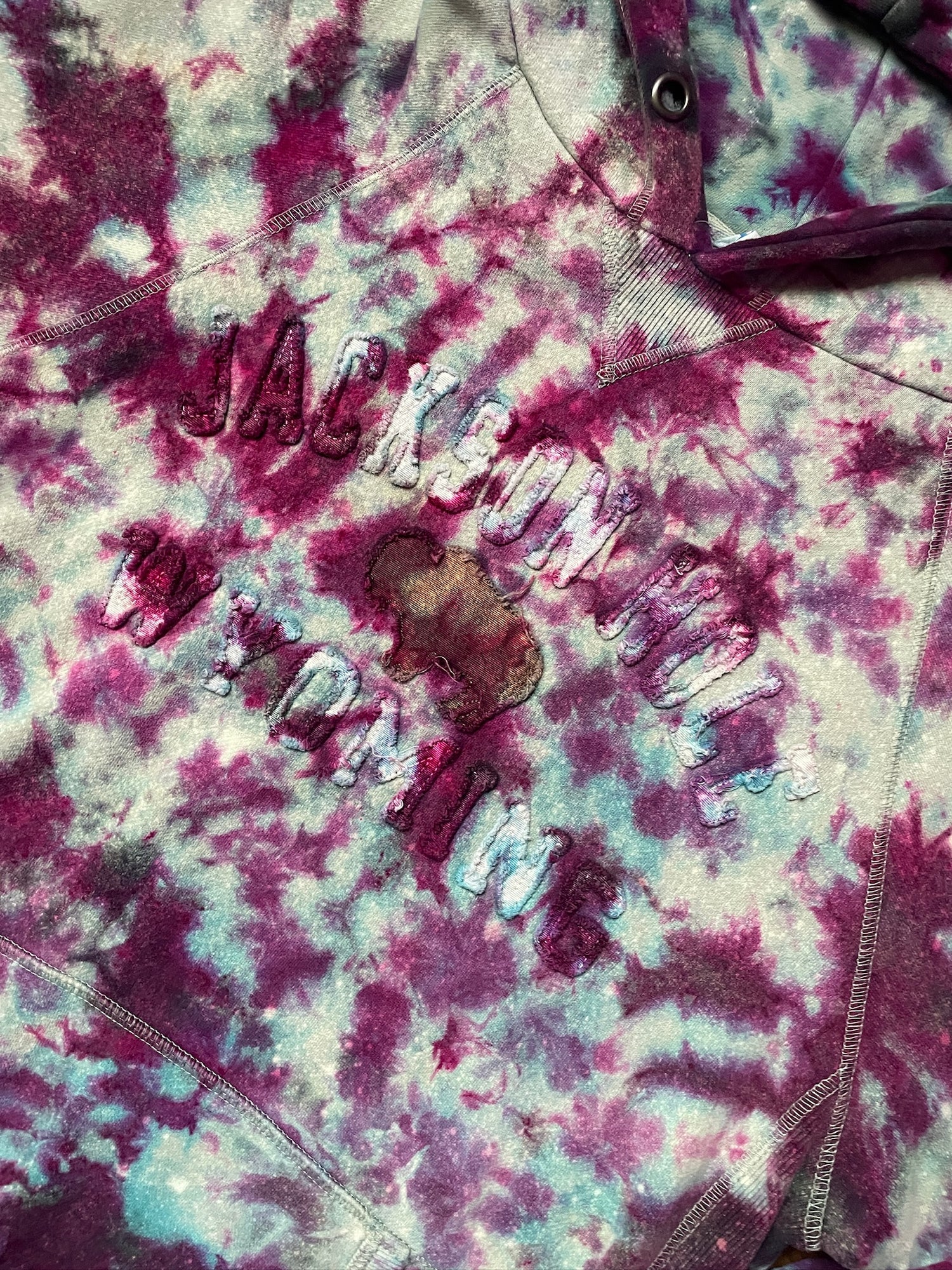 one-of-a-kind hand tie dye sweatshirt with Jackson Hole embroidered on front