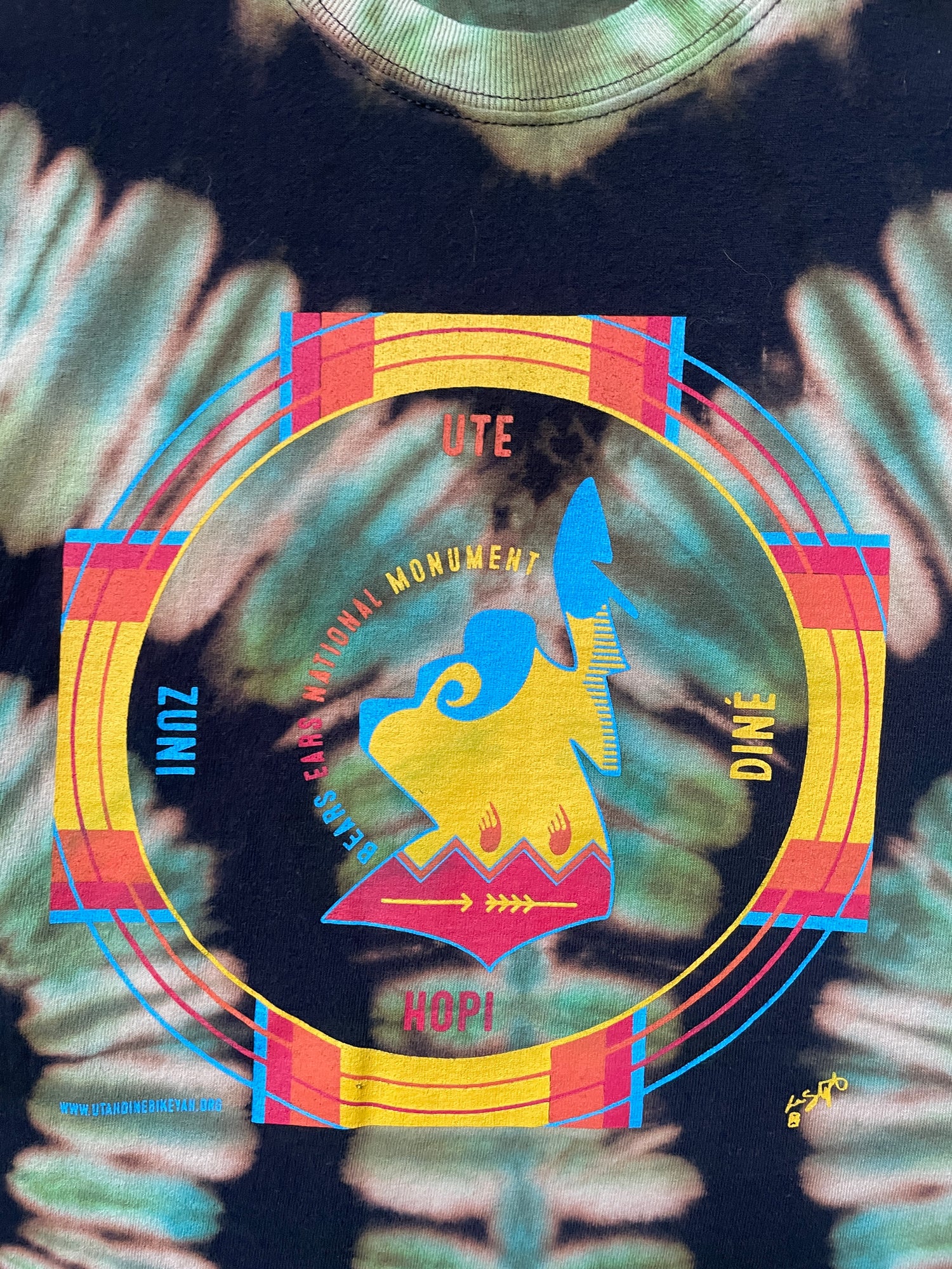 one-of-a-kind hand tie dye t-shirt with Bears Ears graphic on front