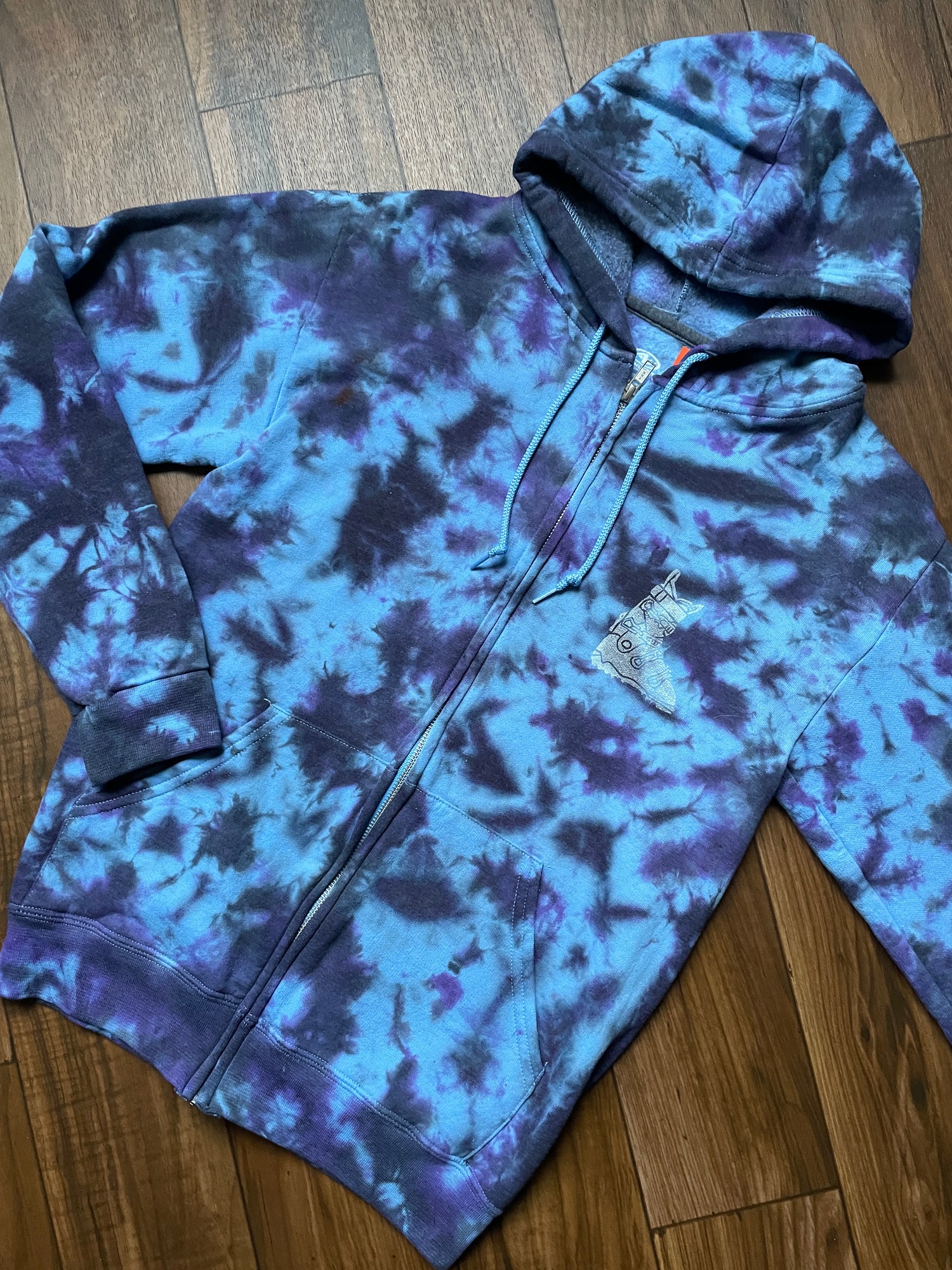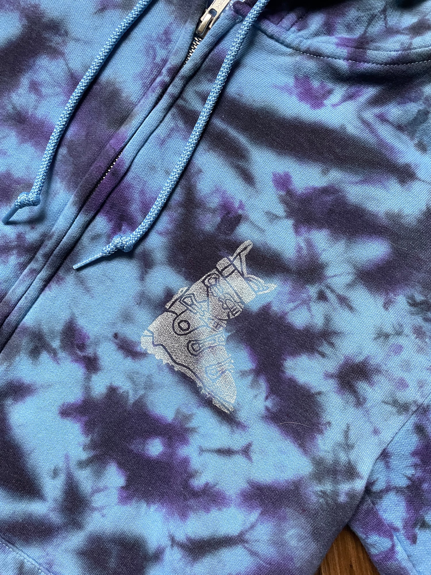 Men's Small Ski Boot Tie Dye Zip-Up Hoodie