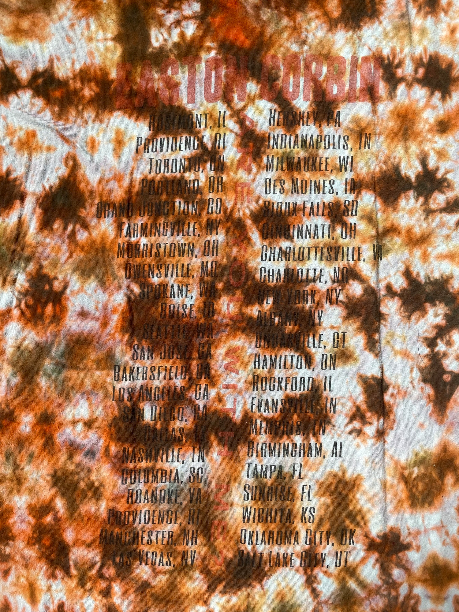 one-of-a-kind hand tie dye t-shirt with Easton Corbin tour graphics on front and back