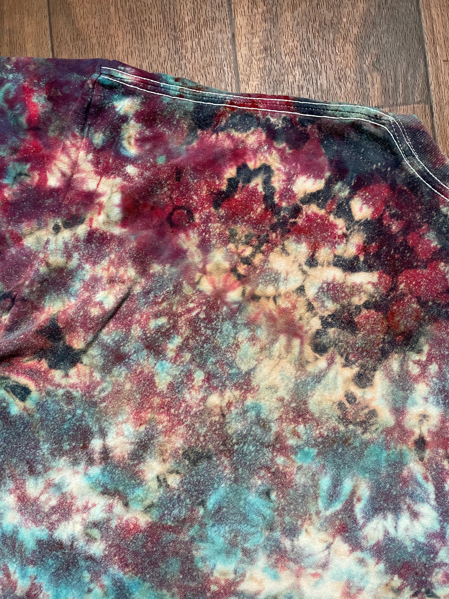 black tshirt bleached and dyed with crumpled tie dye pattern