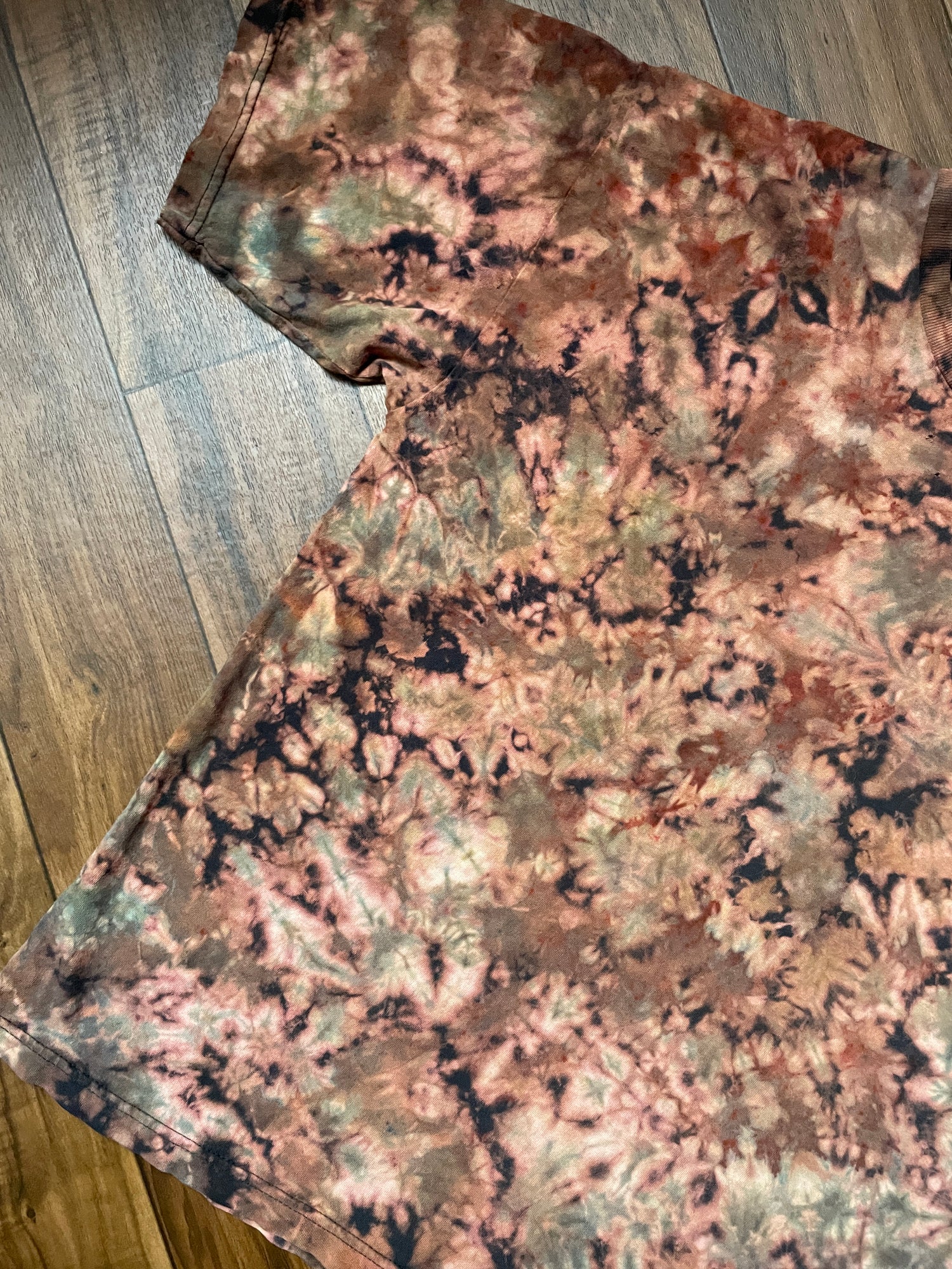 black t-shirt bleached and dyed with crumpled tie dye pattern