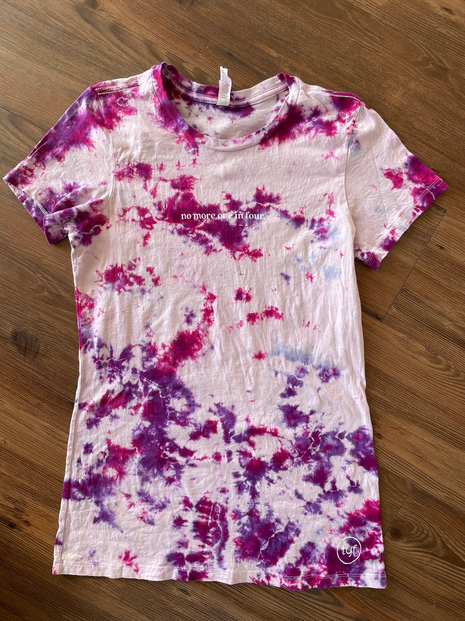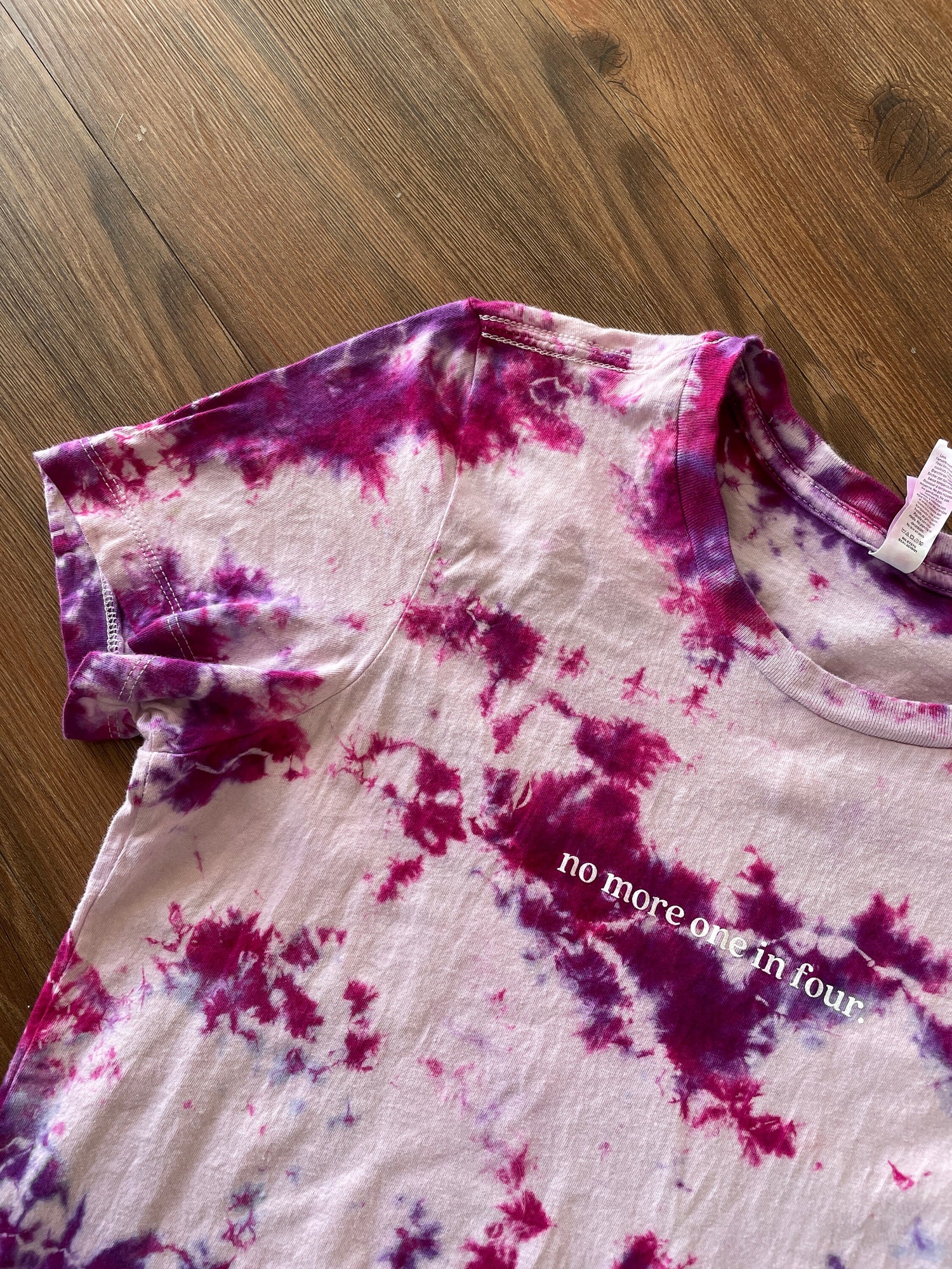 No More 1 in 4 Handmade Tie Dye t-shirt | Sexual Abuse Awareness Short Sleeve Top Women’s Medium | Sustainably Made