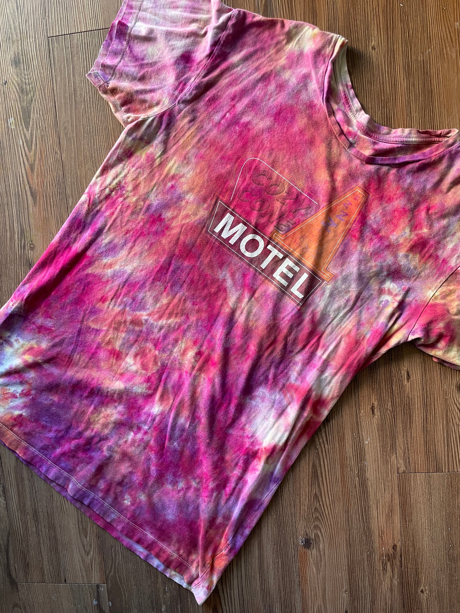 ONE SIZE Men’s Cozy Cone Motel Galaxy Handmade Tie Dye Sleep Shirt | One-Of-a-Kind Pink and Purple Short Sleeve