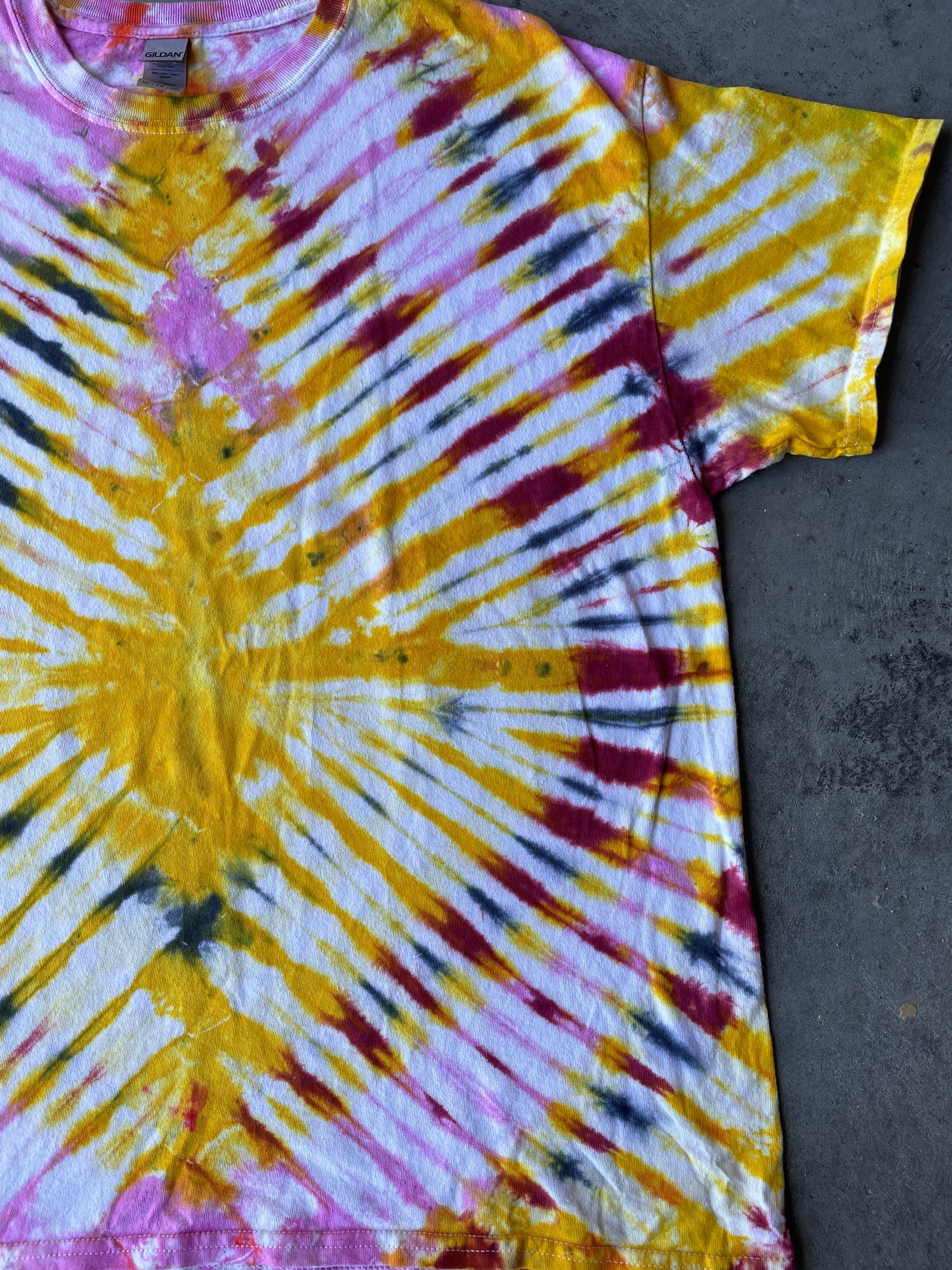 Pink & Yellow Sunburst Short Sleeve Ice Dyed T-Shirt | One-of-a-Kind | Men's XL