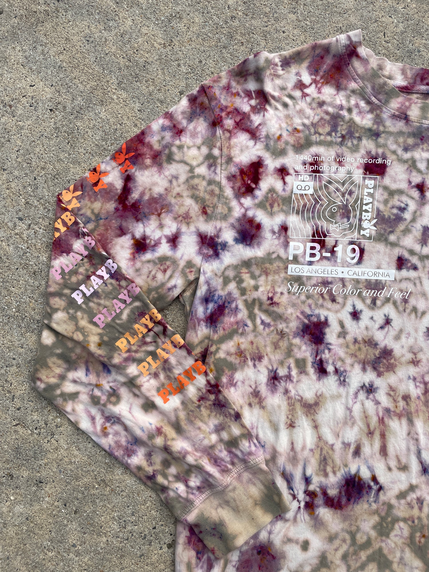 Playboy X PacSun Tan and Pink Long Sleeve Bleach Dyed T-Shirt | Men's XL