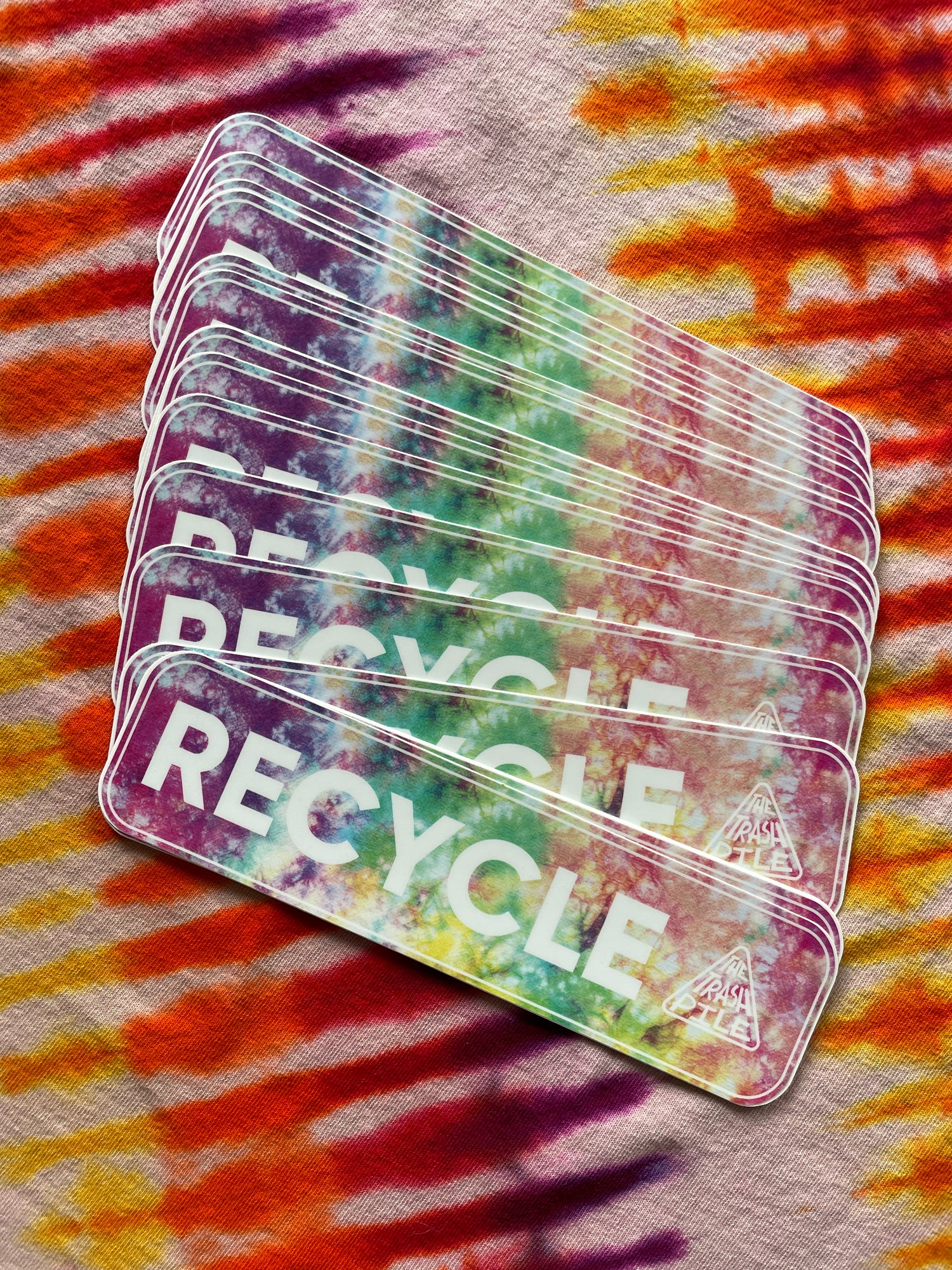 Stick this 7x2.3 inch vinyl sticker on your water bottle, bumper, your neighborhood dumpster, or anywhere you want to spread the good word about fighting fast fashion and ridiculously cool tie dye!