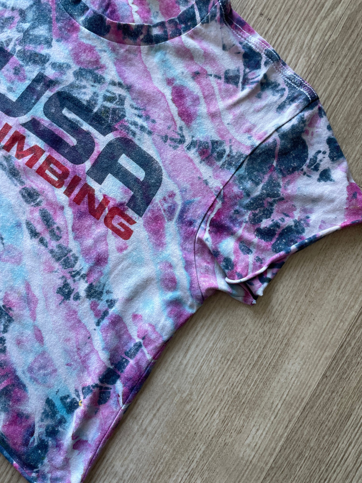 Small Men’s USA Climbing Handmade Geode Tie Dye Cropped T-Shirt | Blue and Pink Tie Dye Short Sleeve Crop Top