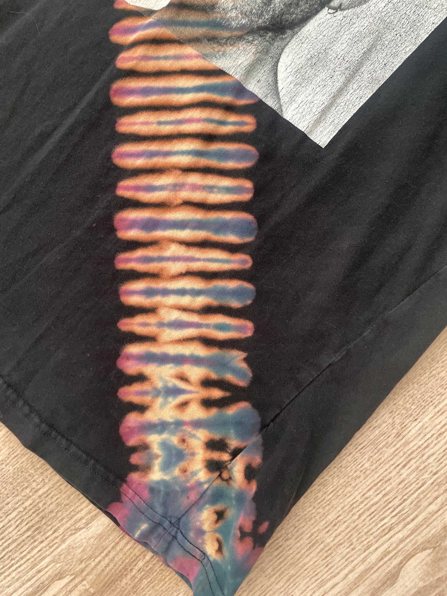 SMALL Men's Sam Smith Handmade Reverse Tie Dye Short Sleeve T-Shirt | One-Of-a-Kind Upcycled Black, Blue, and Purple Pleated Top