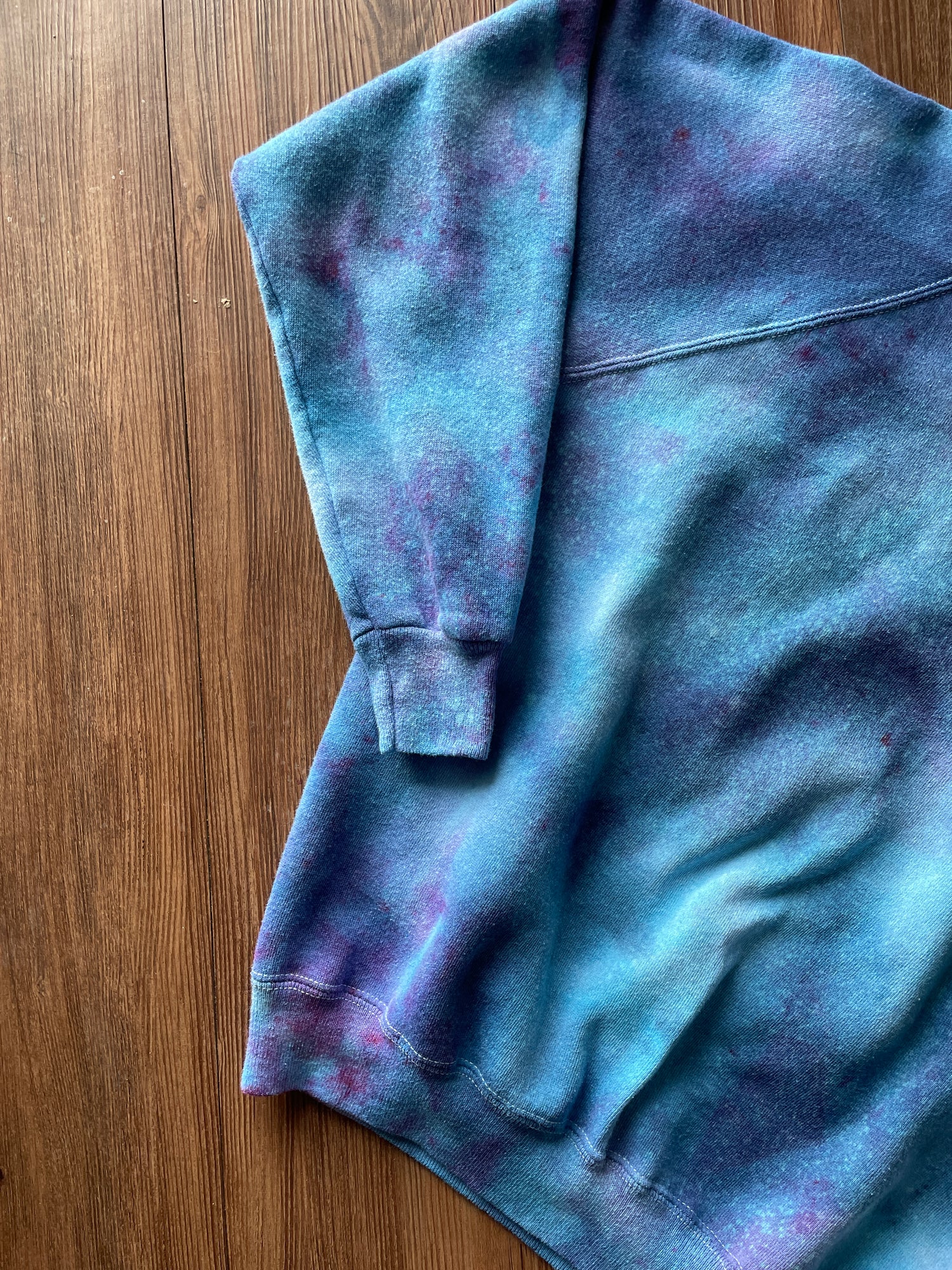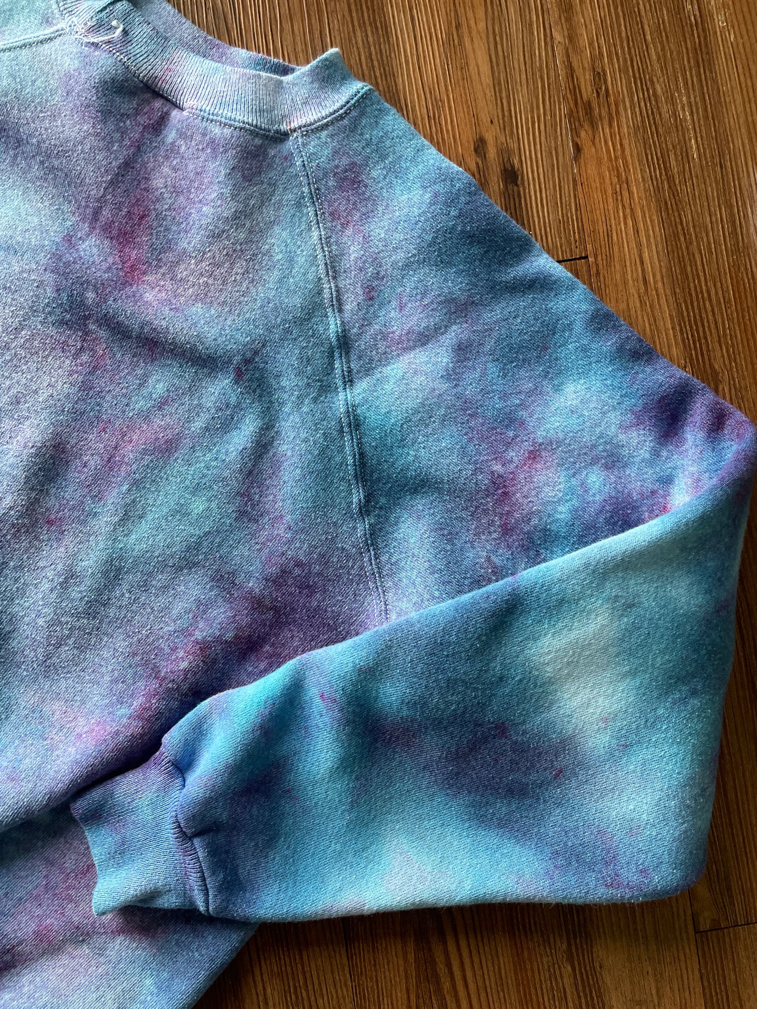 SMALL Women’s Floral Print Galaxy Handmade Tie Dye T-Shirt | One-Of-a-Kind Pastel Blue Long Sleeve