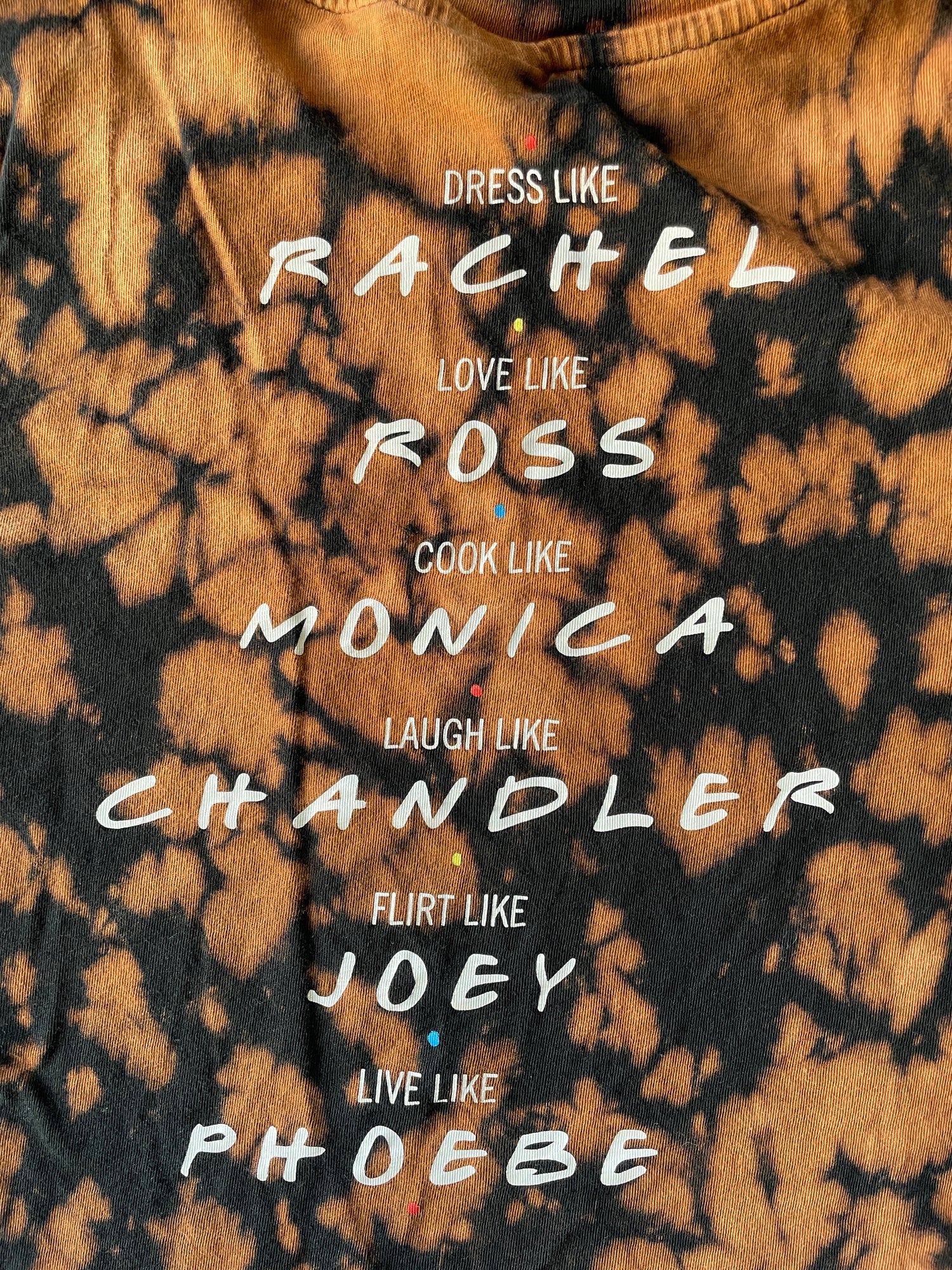 SMALL Women’s Friends Handmade Acid Dye T-Shirt | One-Of-a-Kind Black and Bleach Short Sleeve