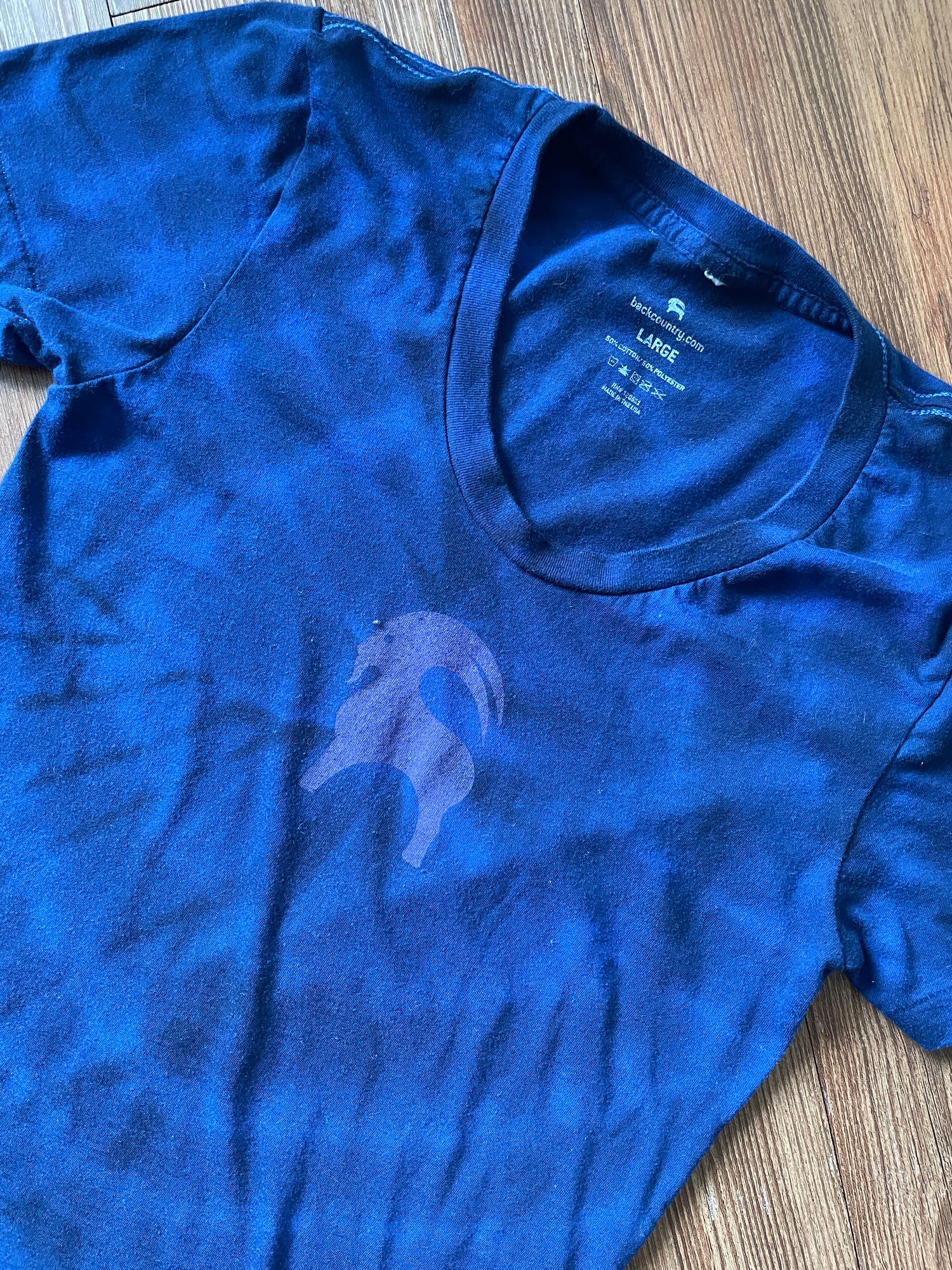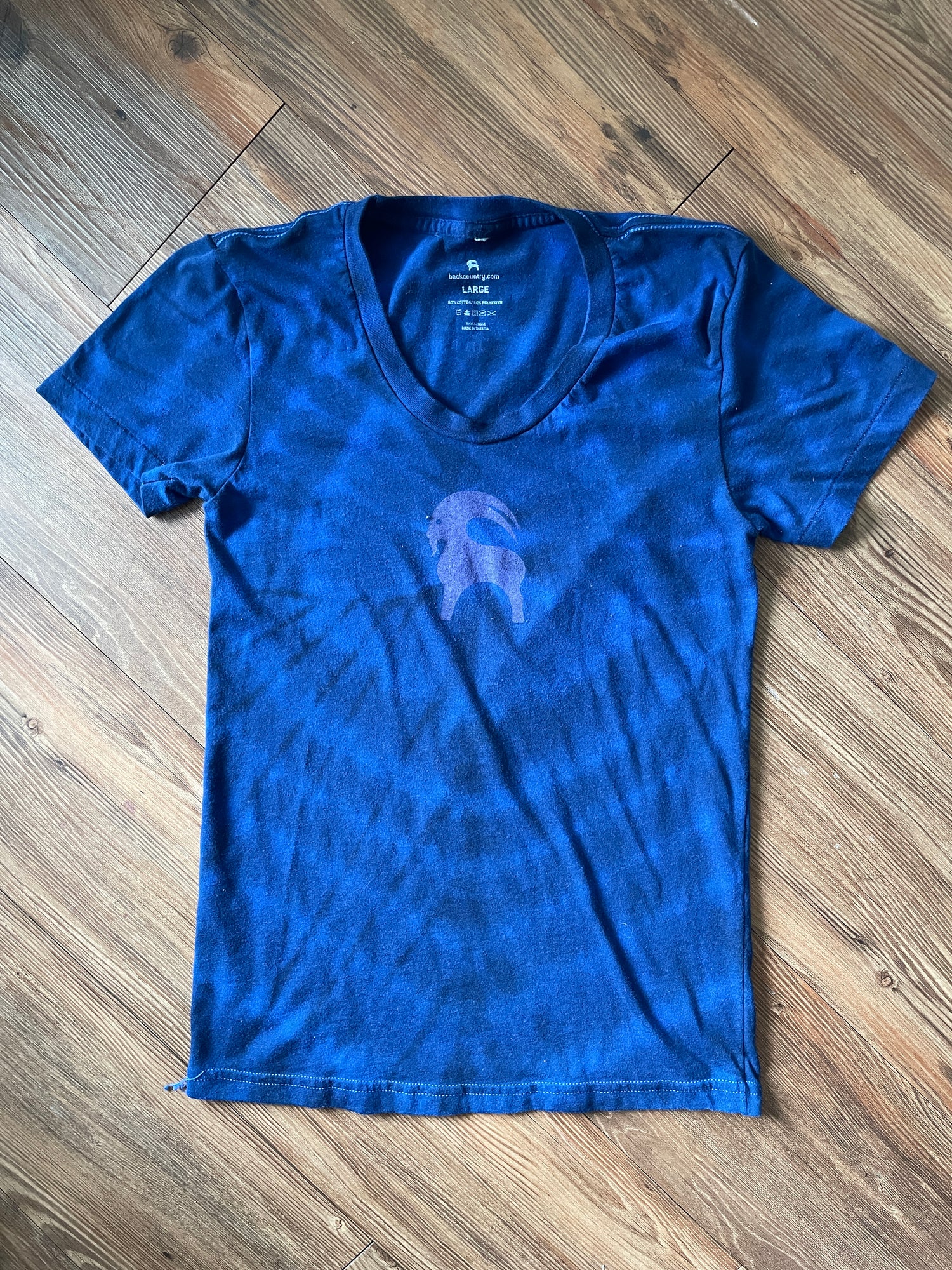 SMALL Women's Backcountry Logo Handmade Tie Dye T-Shirt | One-Of-a-Kind Black and Blue Short SleeveTop