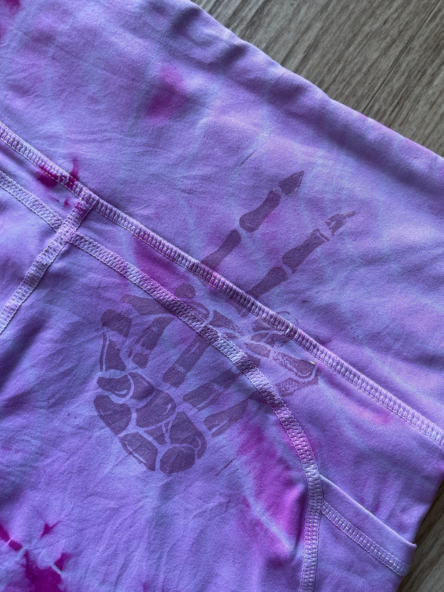 Small Women's Pastel Pink Geode Bike Shorts with Pockets and Peace Skellie Hands Graphic | High-Waist Yoga Workout Running Shorts with Deep Pockets