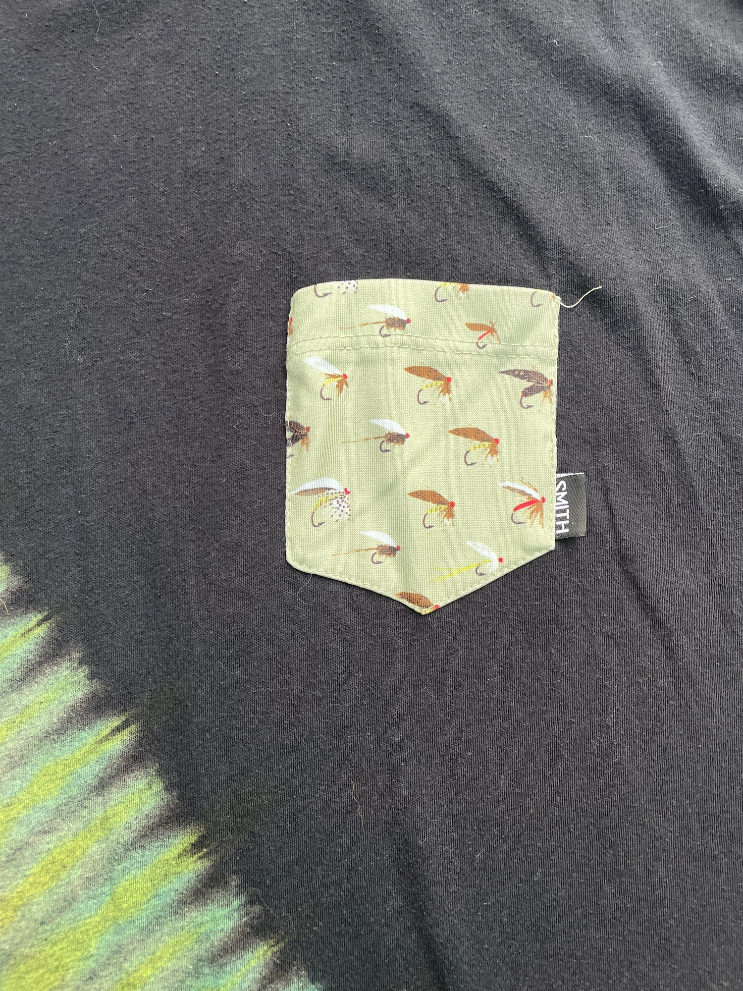Smith Fly Ties Black and Green Short Sleeve Tie Dye T-Shirt | Men's Large