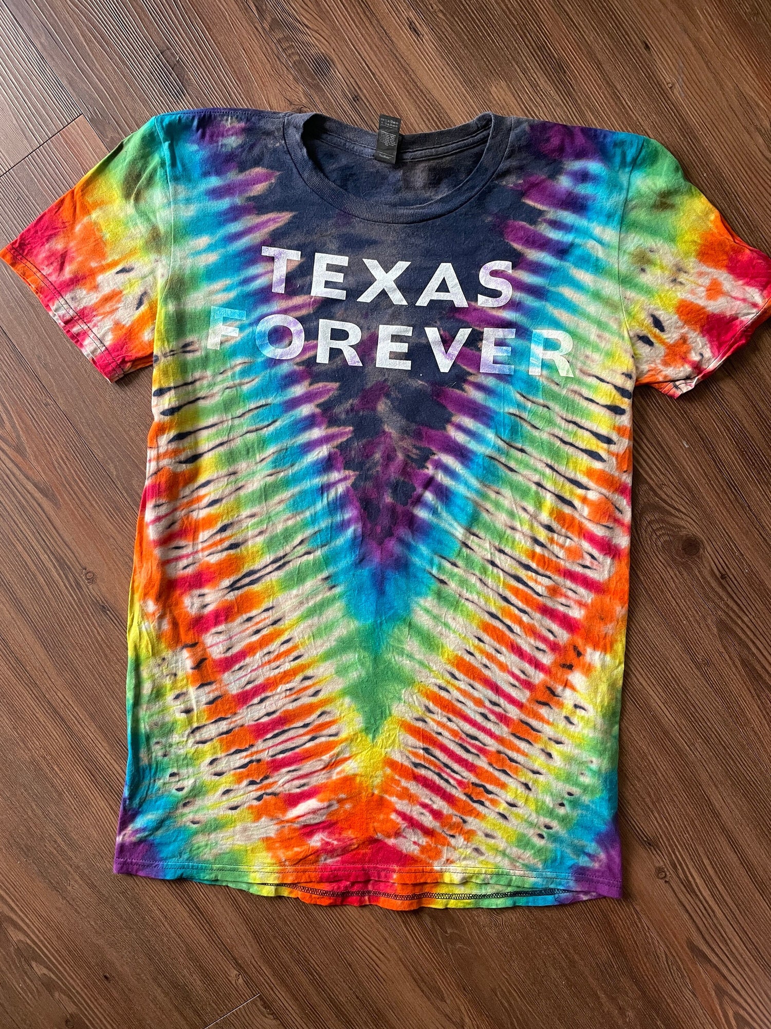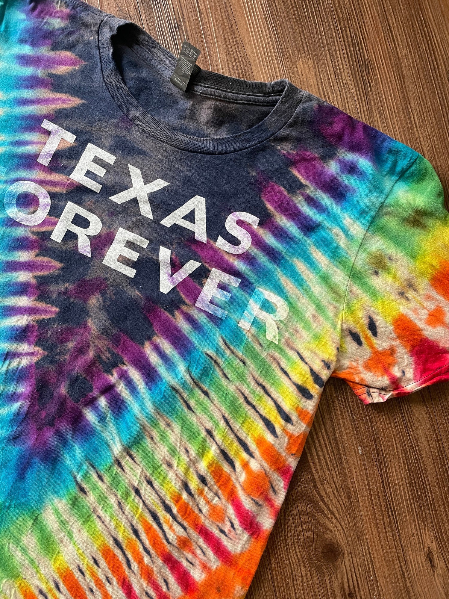 Texas Forever Reverse Tie Dye t-shirt | Friday Night Lights Rainbow Bleach Dye Short Sleeve Top Size Medium | Upcycled & Tie Dyed by Hand