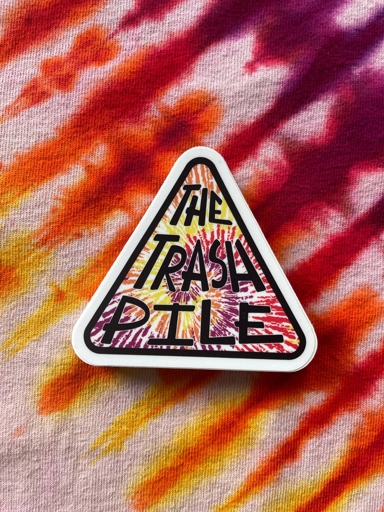 Do you love The Trash Pile? Prove it by stick this 3-inch vinyl sticker on your water bottle, bumper, your neighborhood dumpster, or anywhere you want! Help spread the good word about ridiculously cool tie dye!