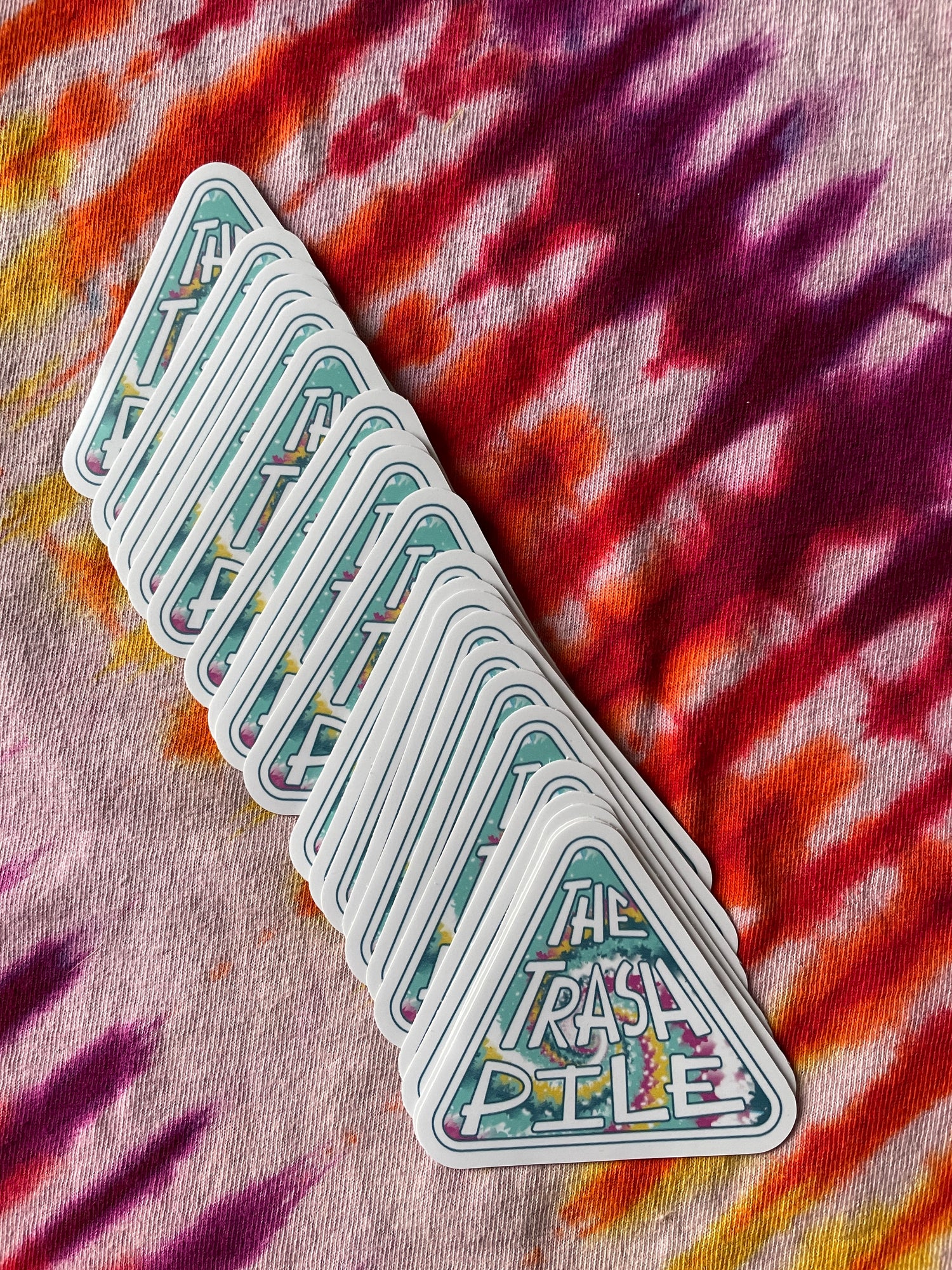 Do you love The Trash Pile? Prove it by stick this 3-inch vinyl sticker on your water bottle, bumper, your neighborhood dumpster, or anywhere you want! Help spread the good word about ridiculously cool tie dye!