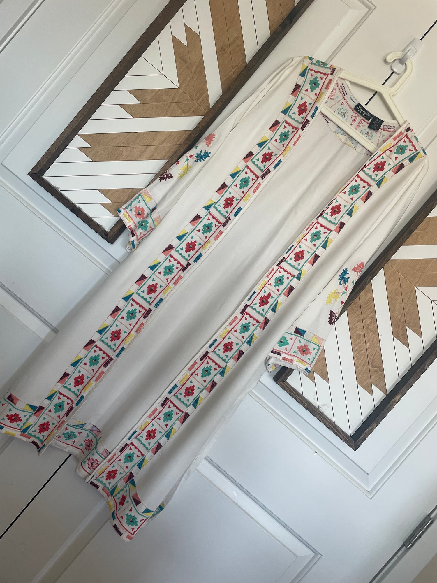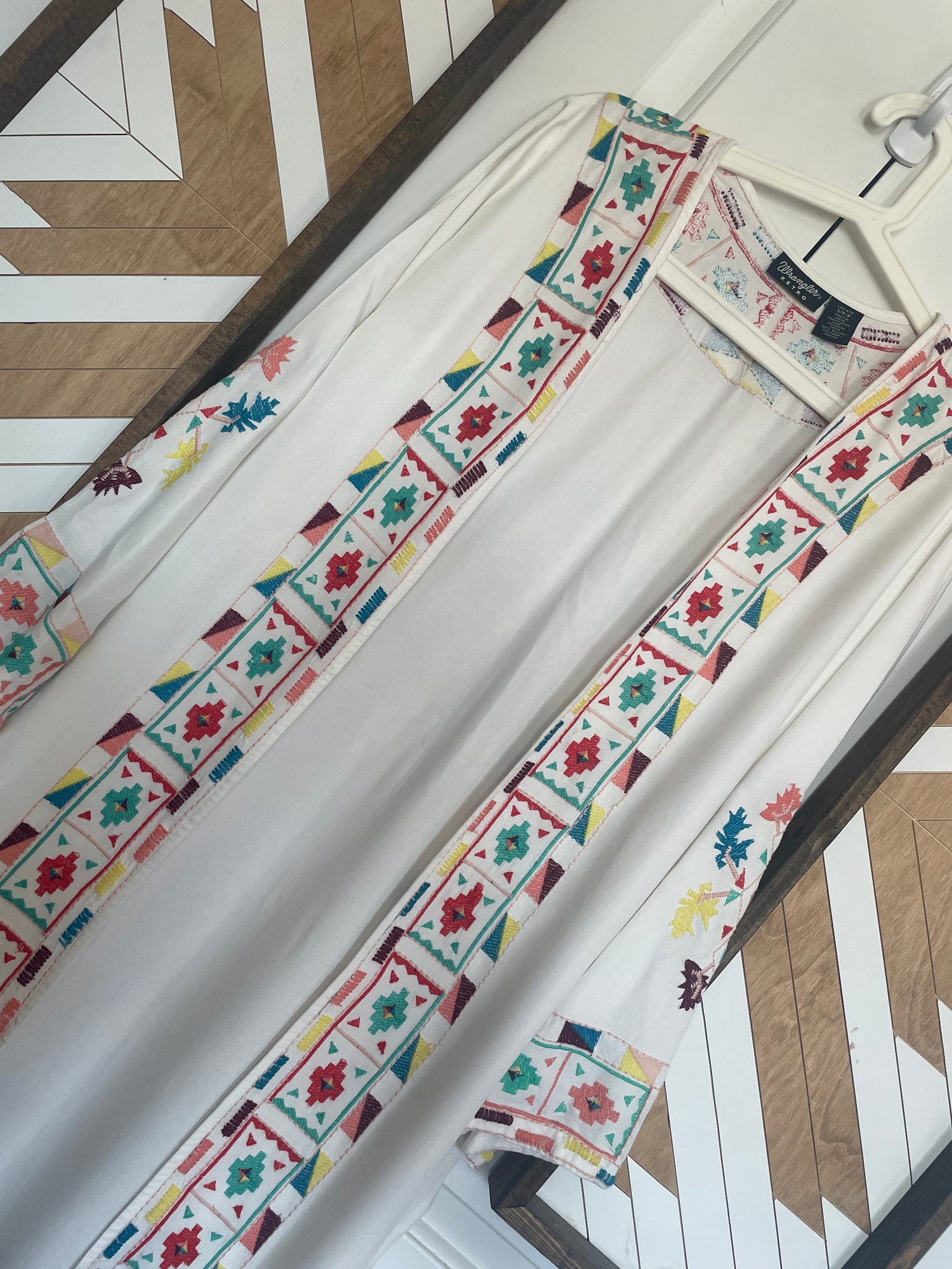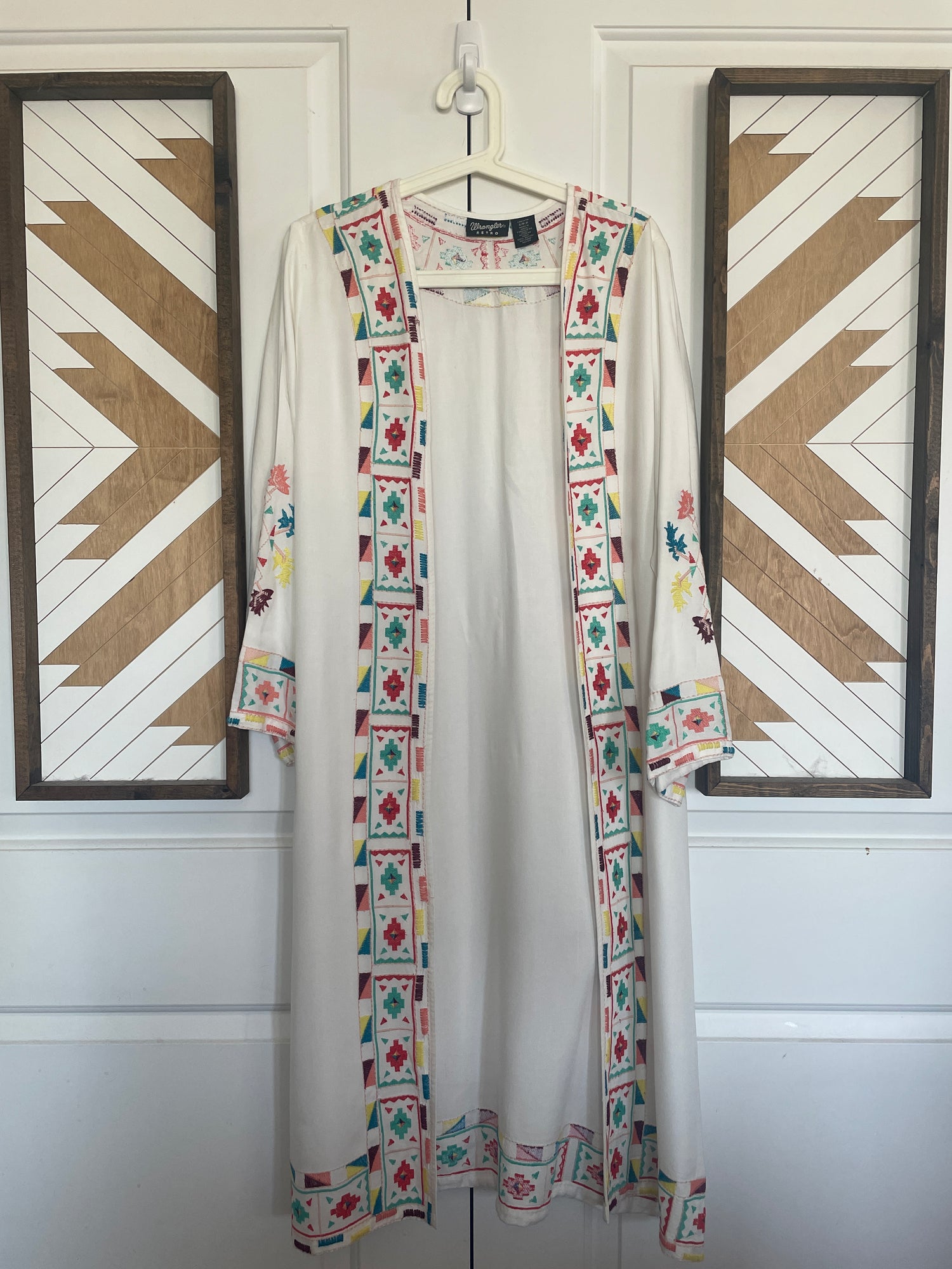 Women’s Small Wrangler Embroidered Duster | White Kimono With Southwestern Accents