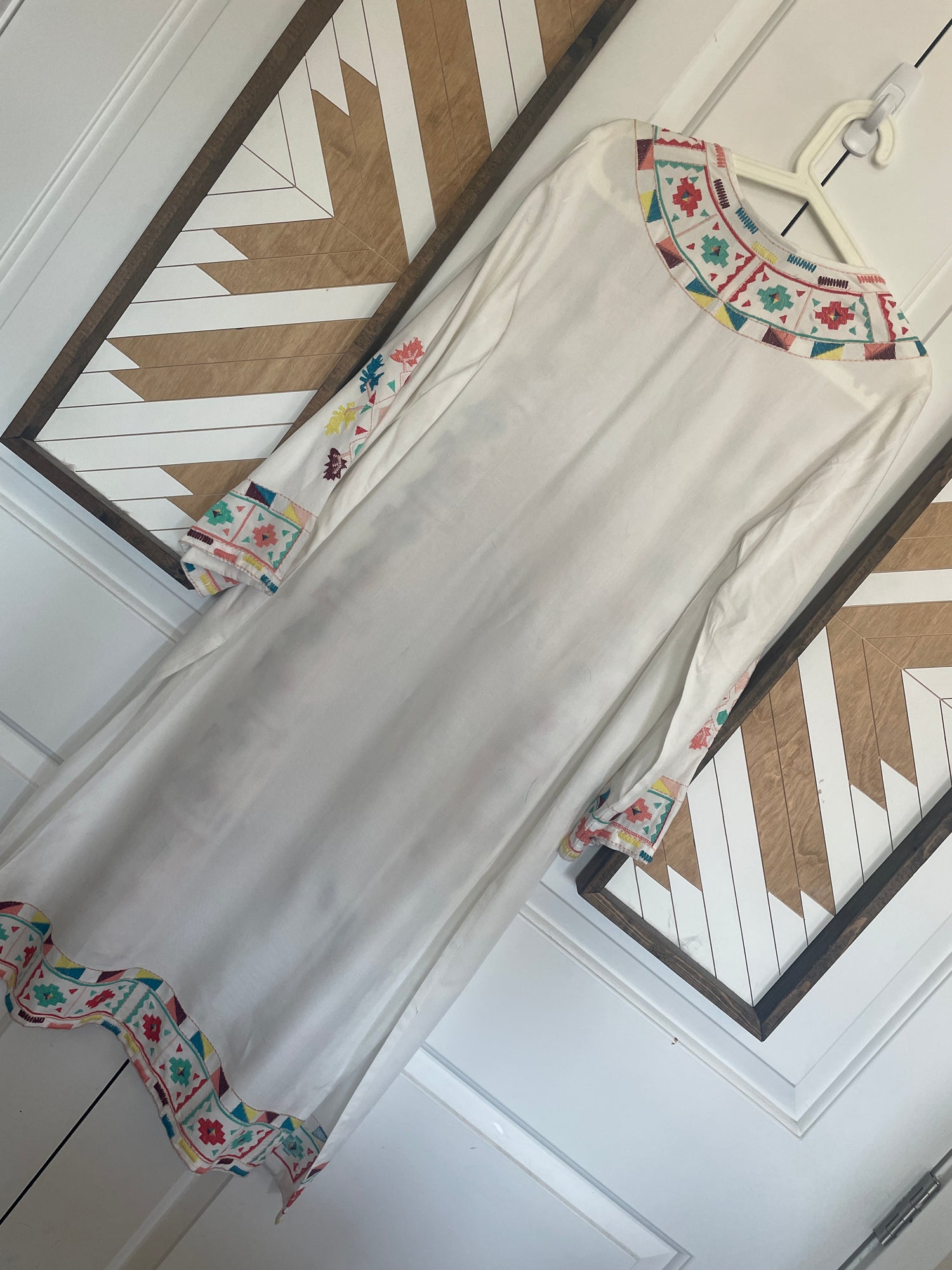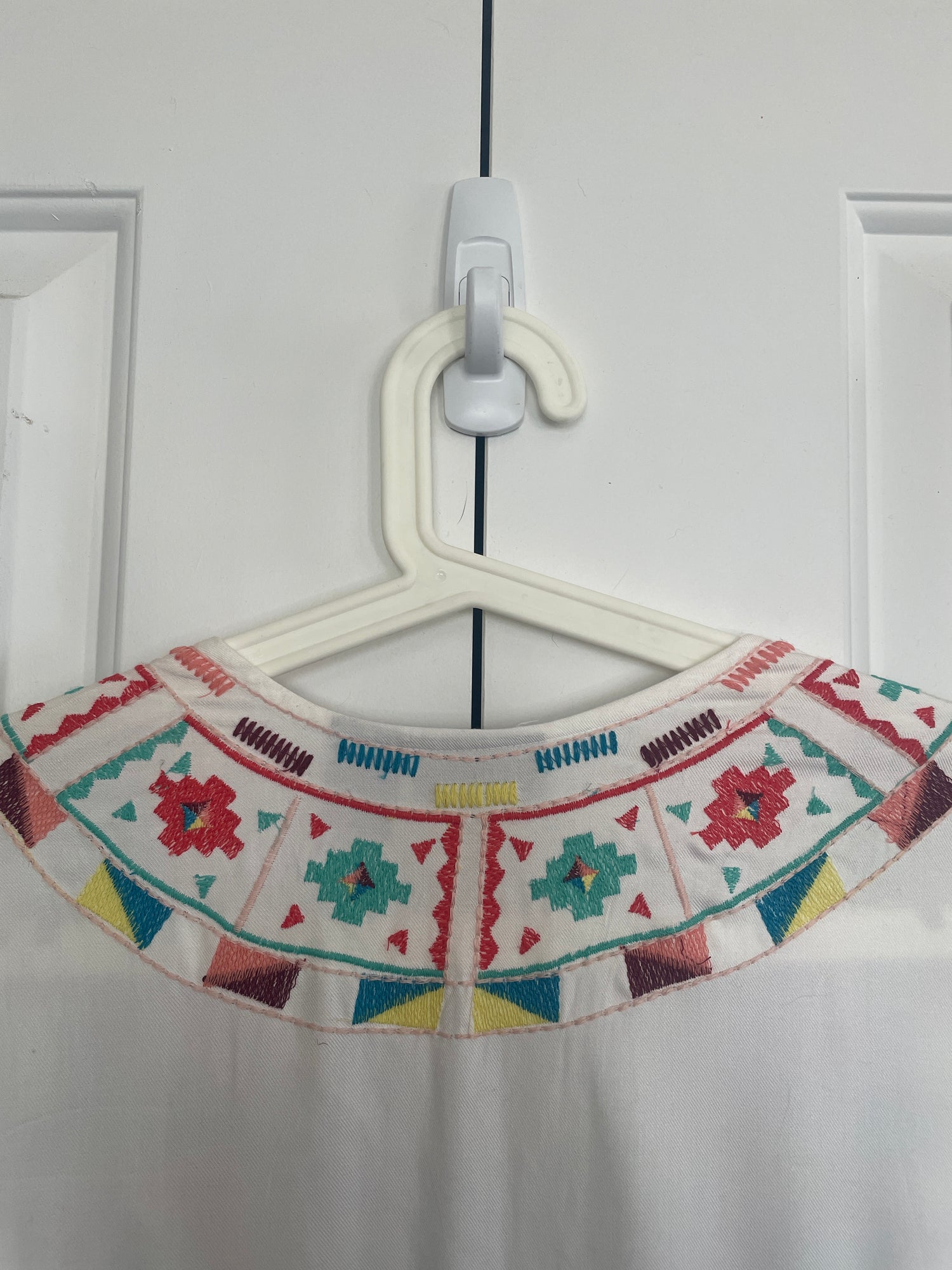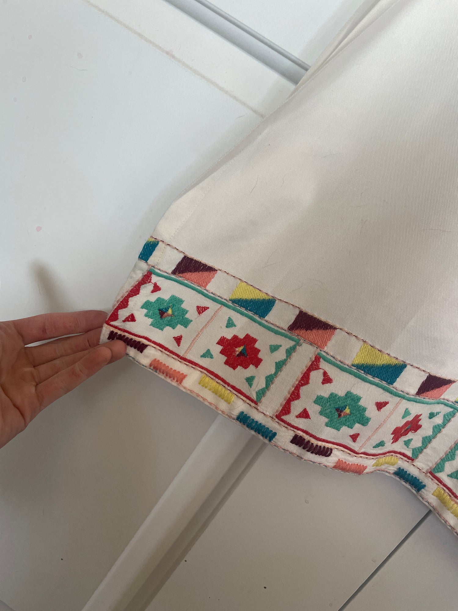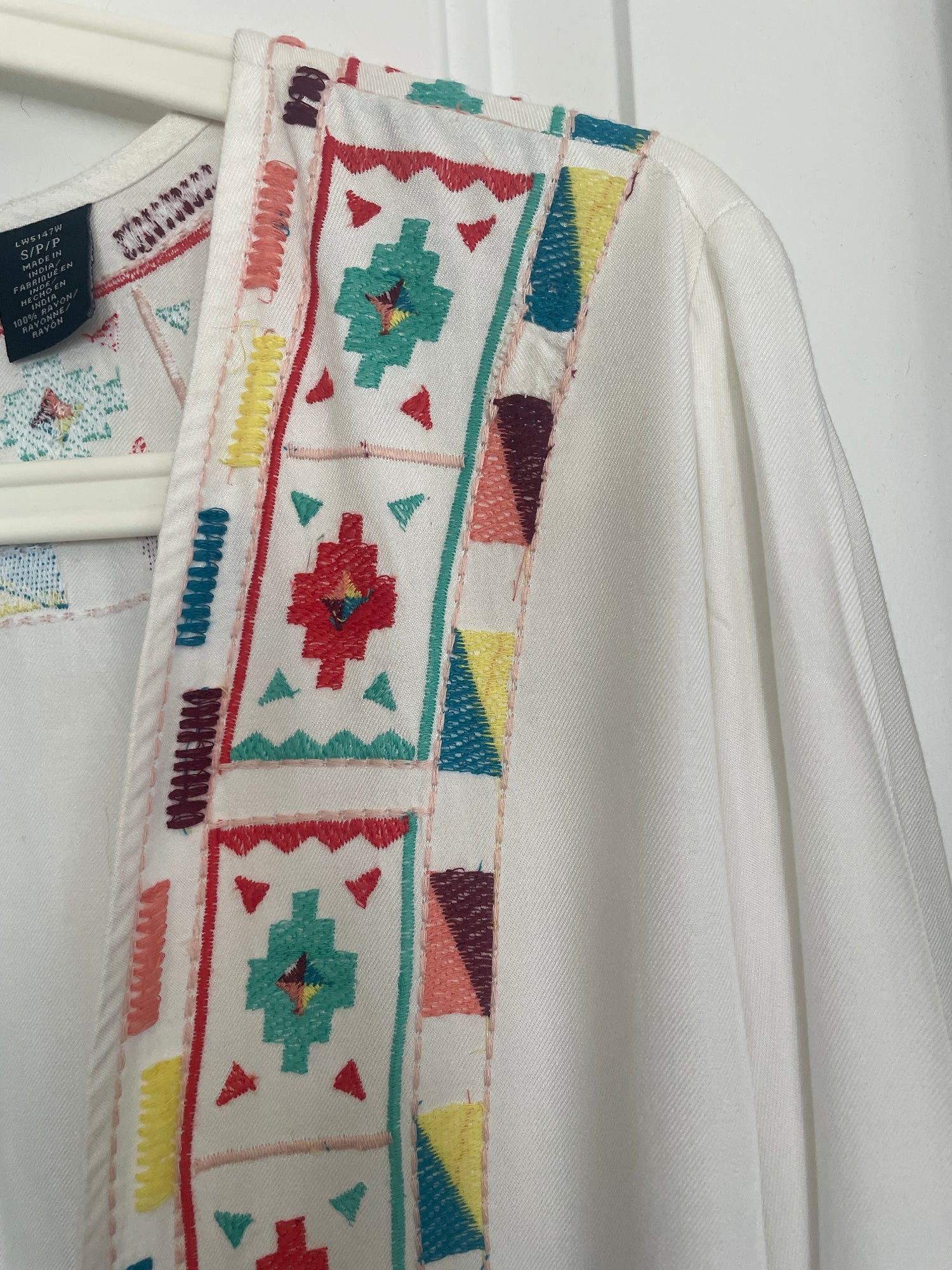 Multicolor embroidery on body trim and sleeves