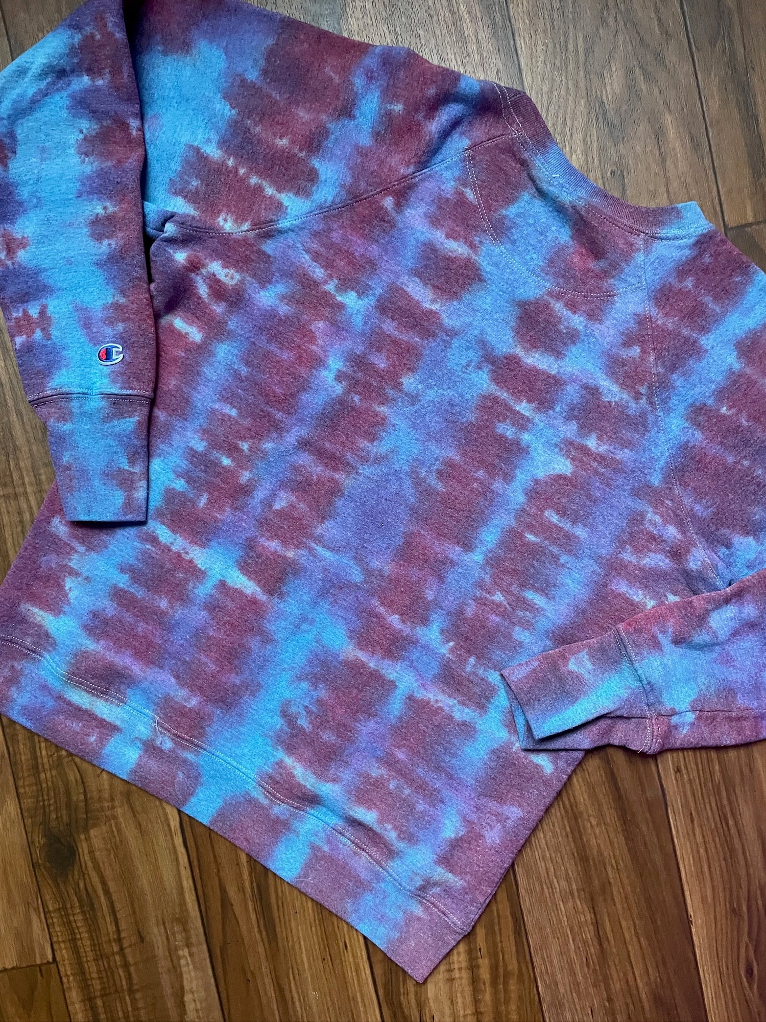 Unisex Medium Champion Red, Purple, and Blue Tie Dye Crewneck Sweatshirt