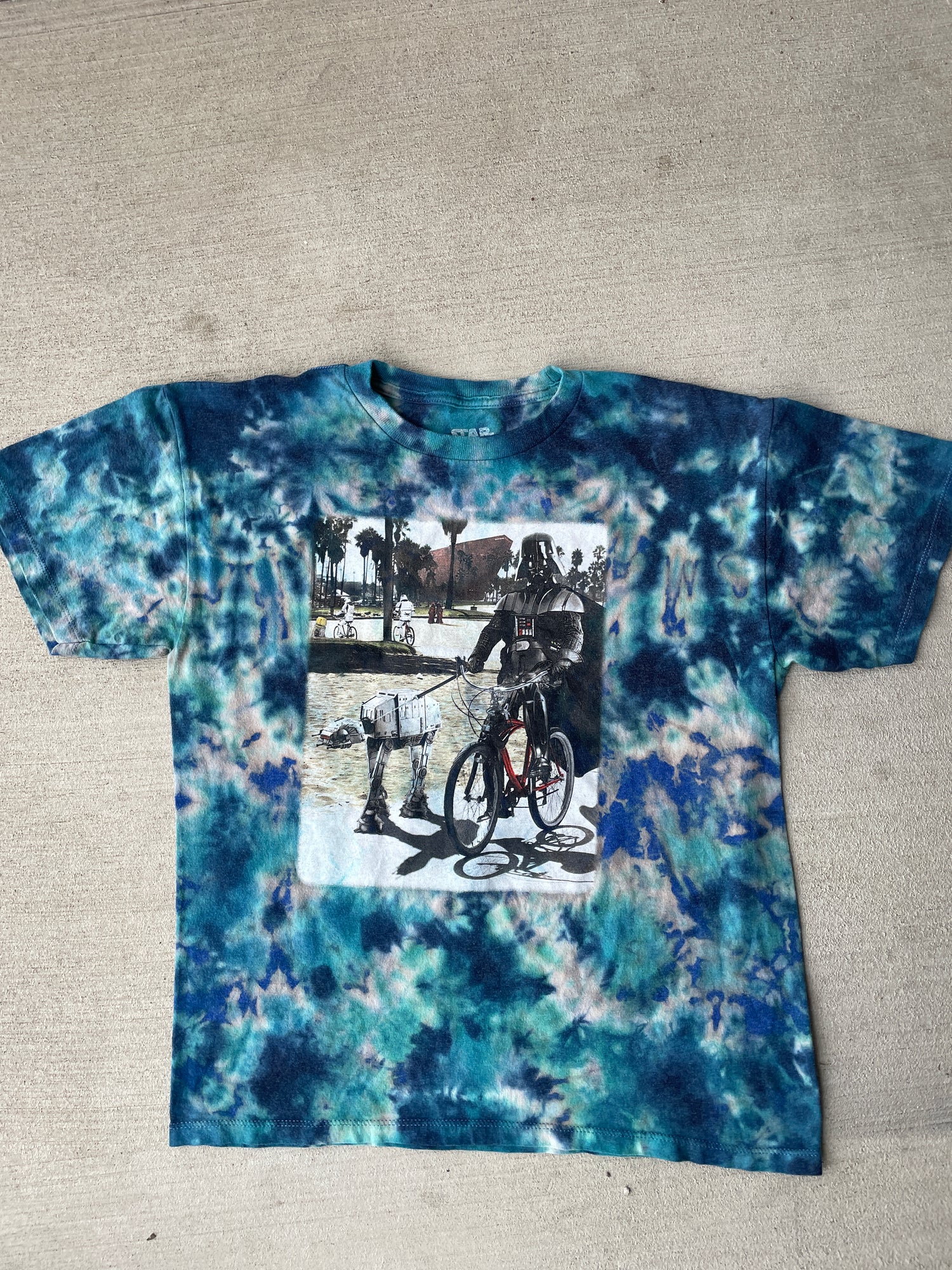 XL Boys Youth Darth Vader Biking AT-AT Handmade Tie Dye T-Shirt | Star Wars Reverse Tie Dye Short Sleeve