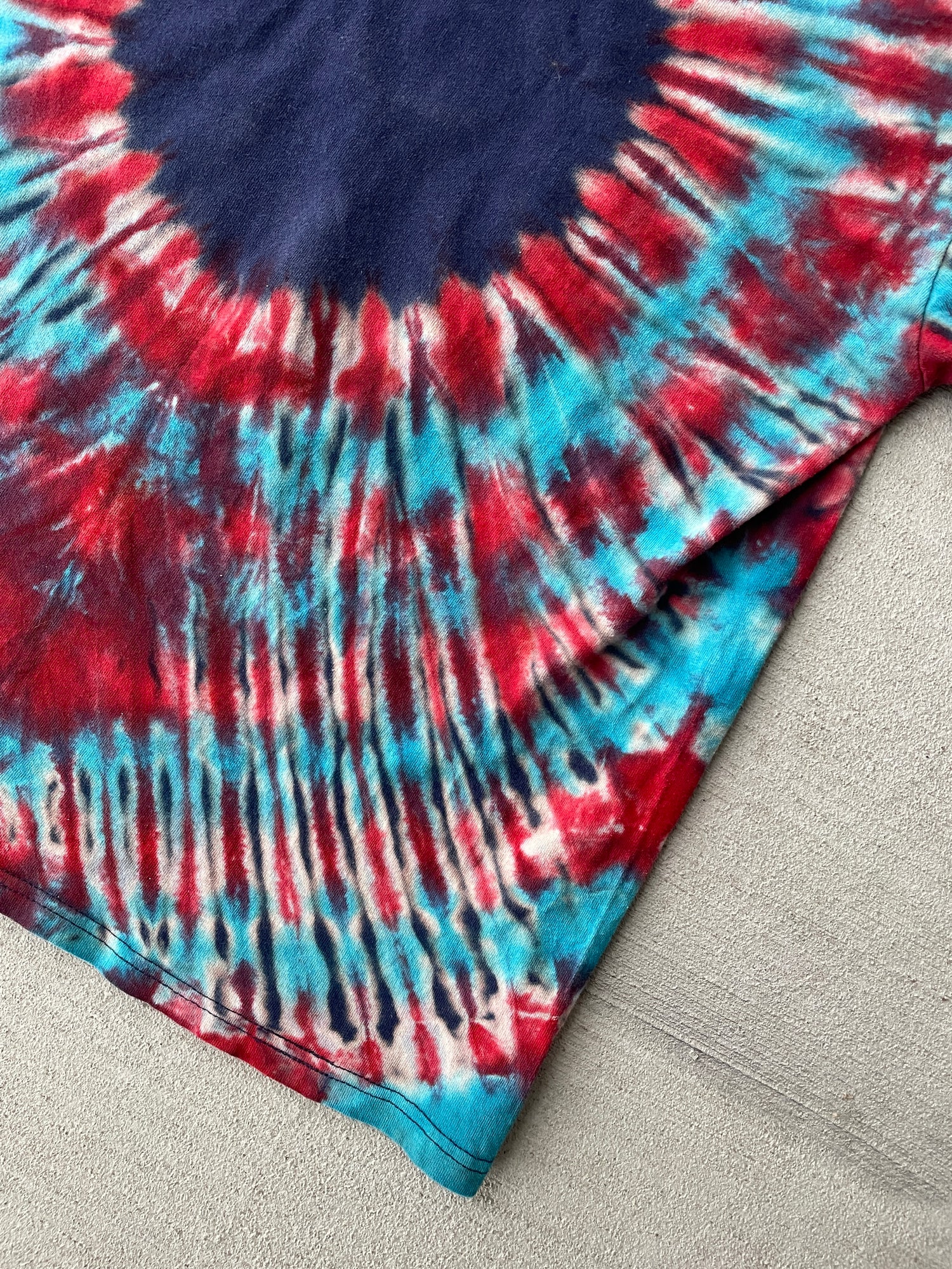XL Men’s Captain America Handmade Tie Dye T-Shirt | Marvel Red, White, and Blue Reverse Tie Dye Short Sleeve
