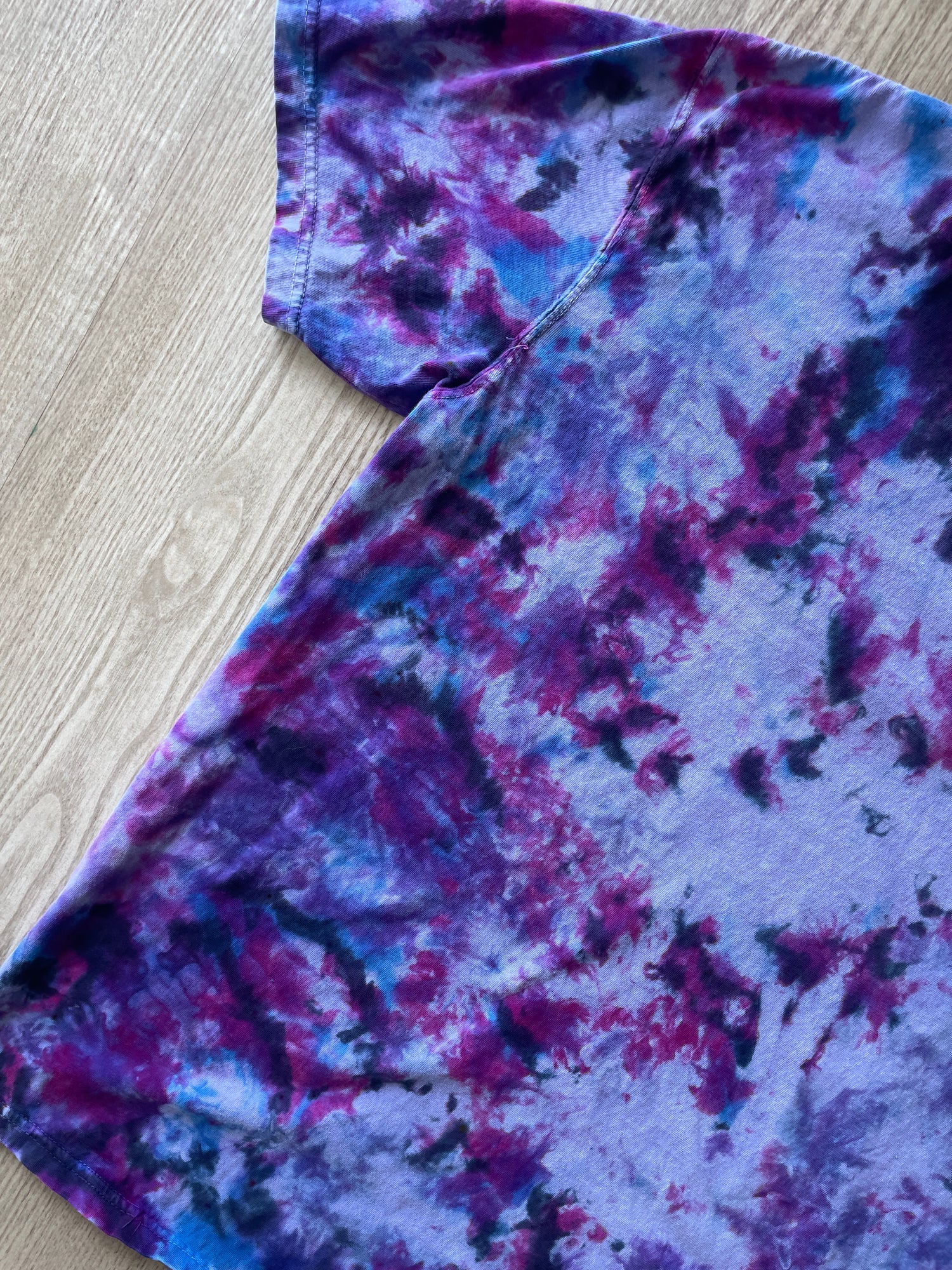 purple tshirt dyed with shades of purple and blue "galaxy" tie dye pattern