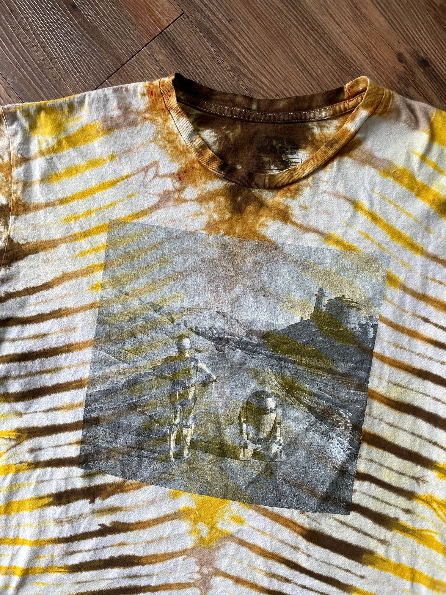 XL Men’s R2-D2 and C3PO Tattooine Handmade Tie Dye T-Shirt | Star Wars Yellow and Brown Short Sleeve