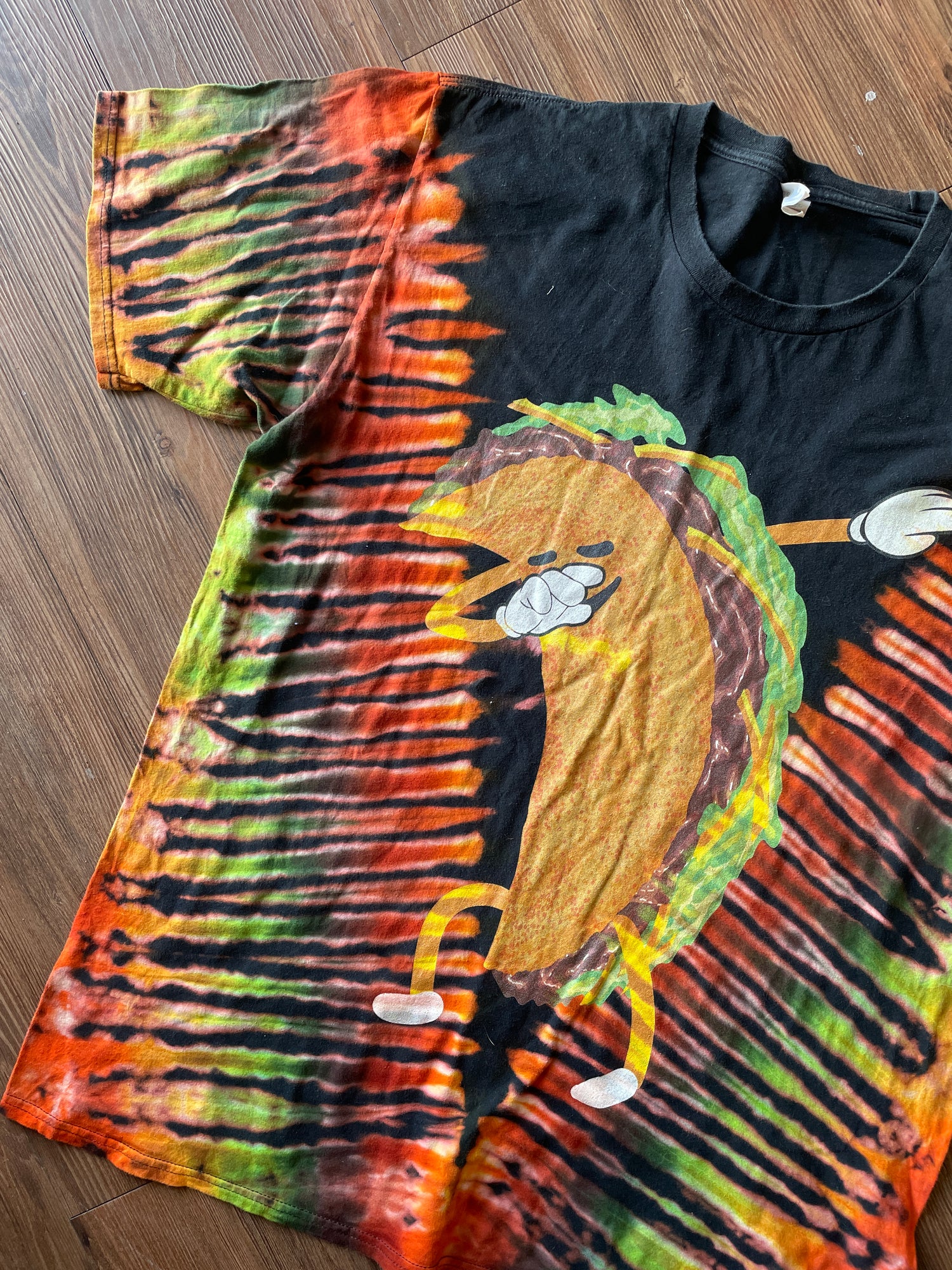 XL Men’s Taco Dabbing Tie Dye T-Shirt | Black, Green, and Orange Handmade Reverse Tie Dye Short Sleeve
