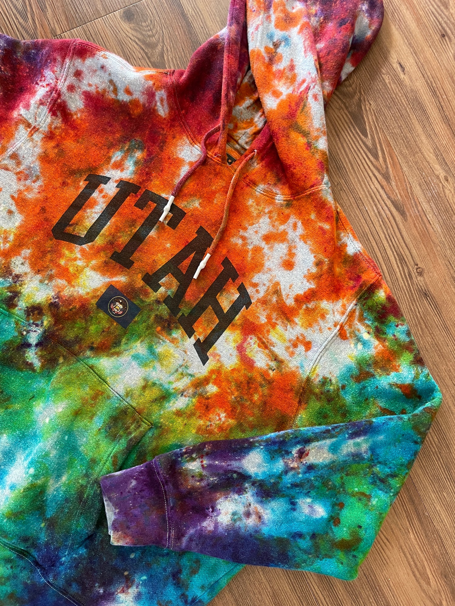 XL Men’s Utah Rainbow Handmade Tie Dye Heavyweight Hoodie | Rainbow Crumpled Tie Dye Long Sleeve Hooded Sweatshirt