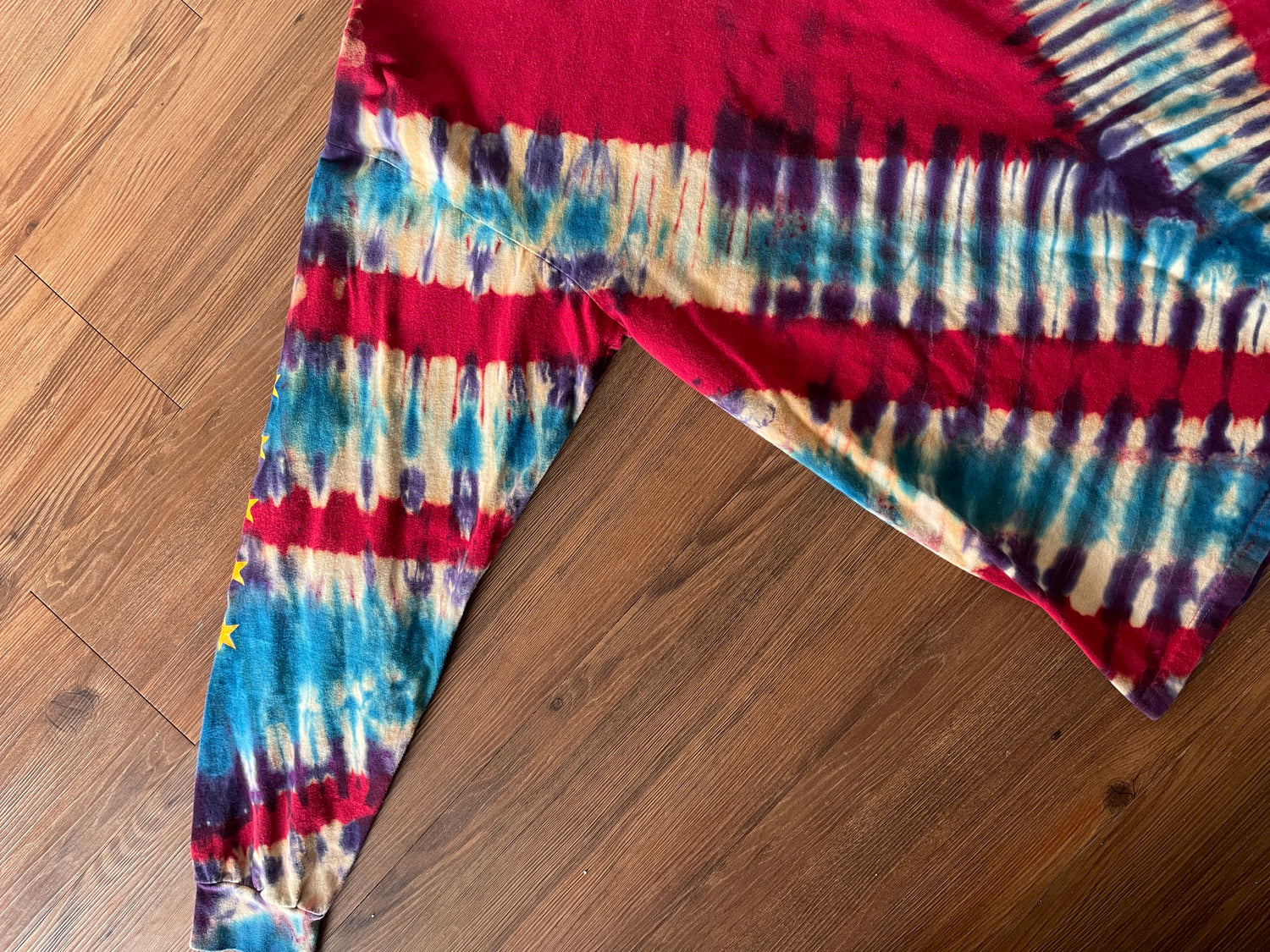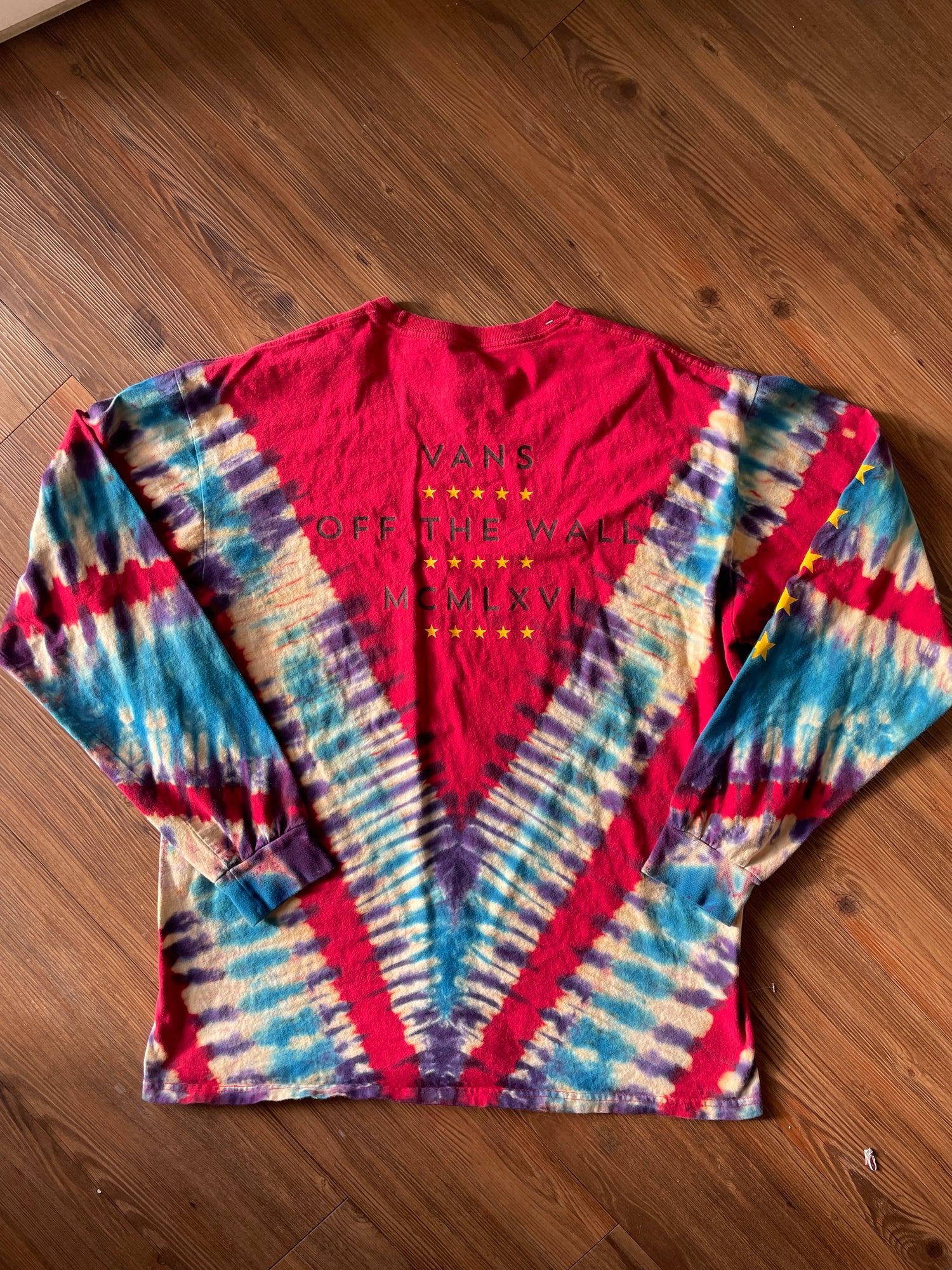 XL Men’s Vans Off The Walls Handmade Reverse Tie Dye Long Sleeve T-Short | Red, White, and Blue V-Pleated Long Sleeve