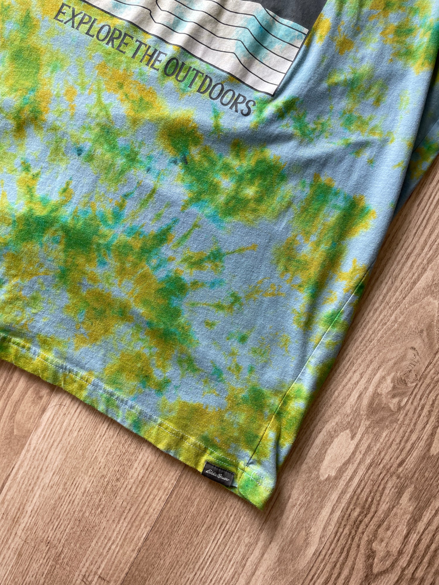 XL (Tall) Men’s Eddie Bauer Explore the Outdoors Handmade Tie Dye T-Shirt | One-Of-a-Kind Green and Blue Short Sleeve